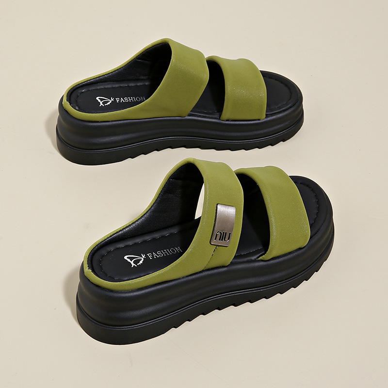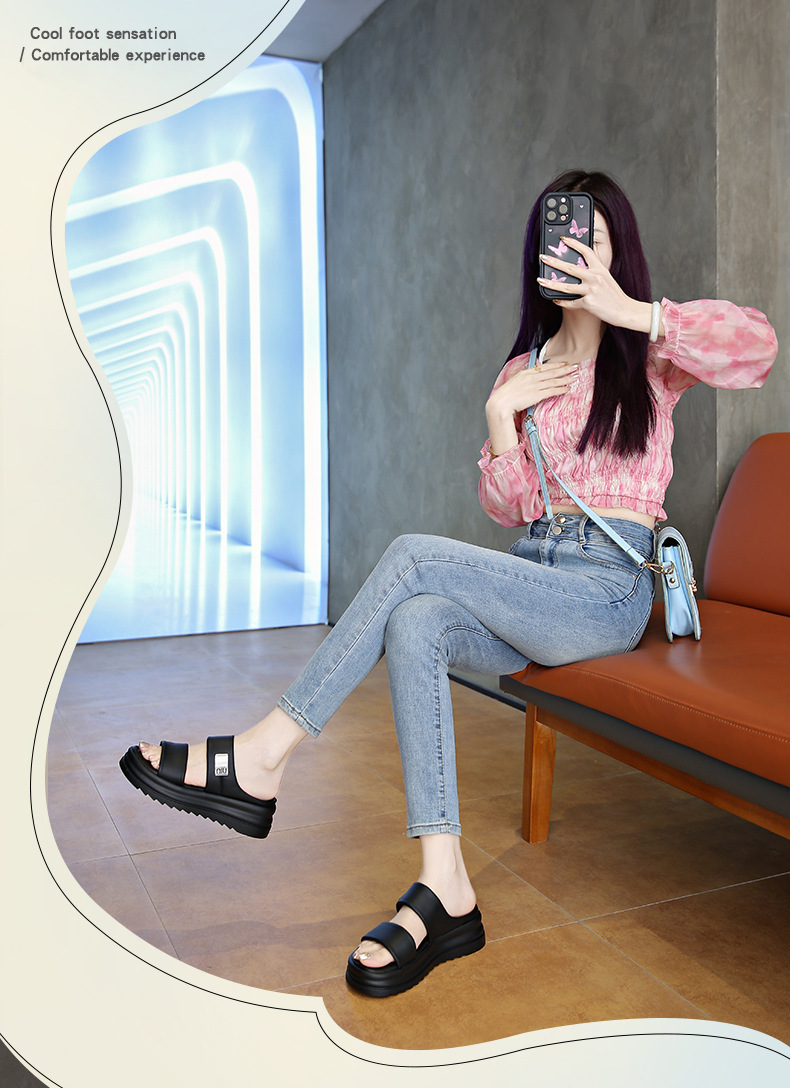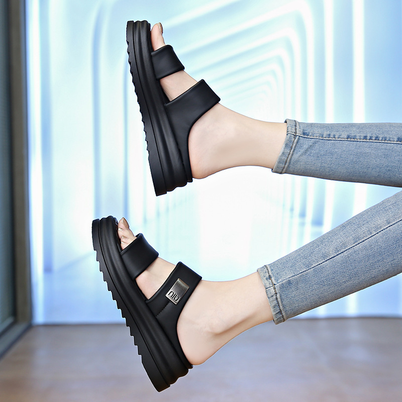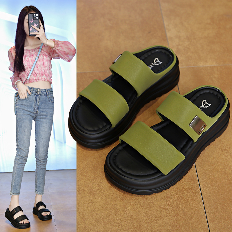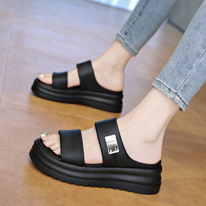 인터넷 축하 두꺼운 바닥 슬리퍼 여성 2025 년 여름 새로운 한국식 물고기 입 셔츠 슬리퍼 비치 샌들스토어 가기