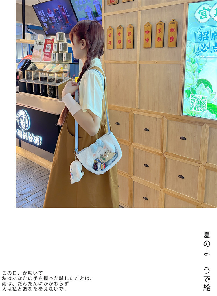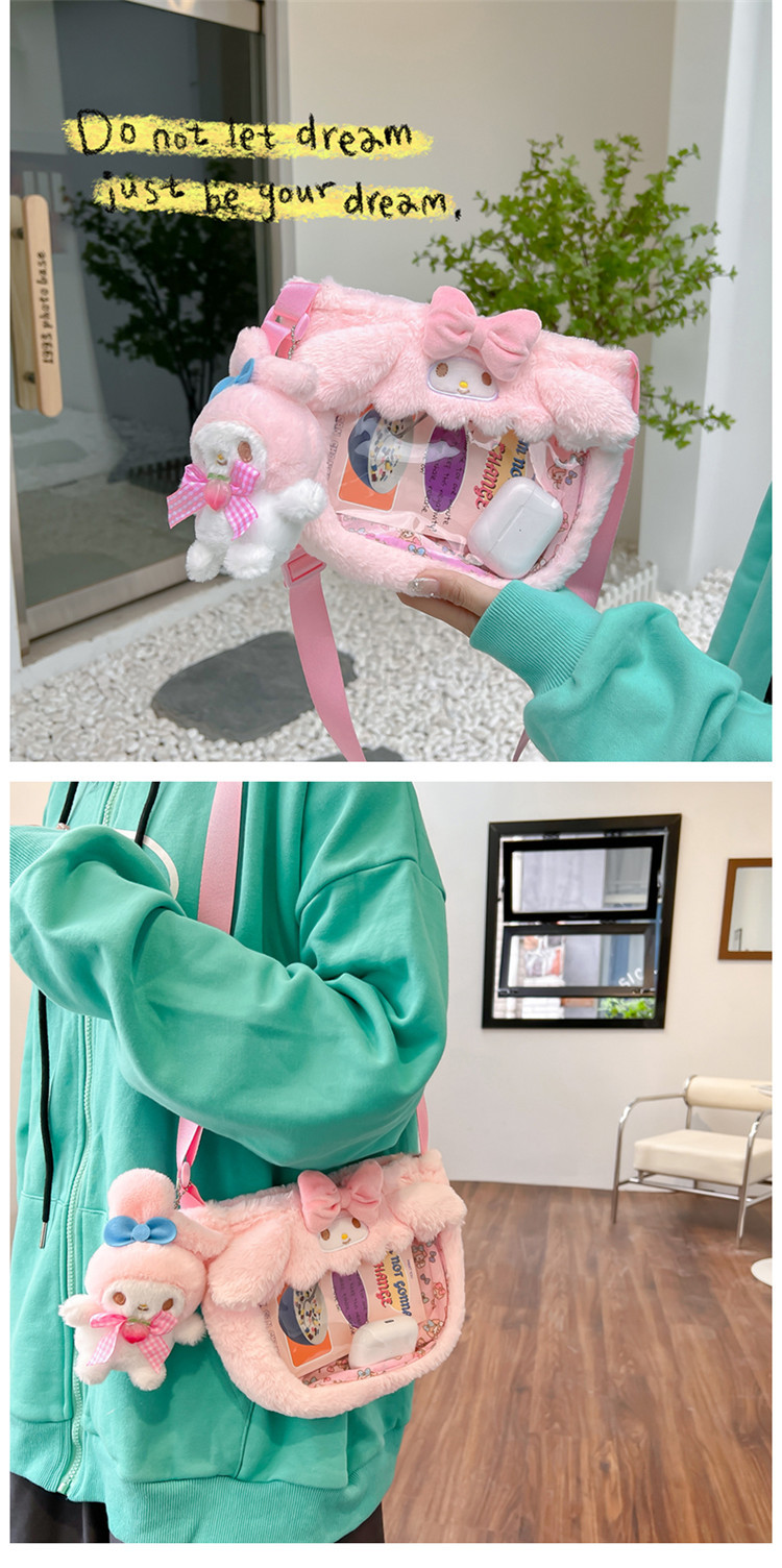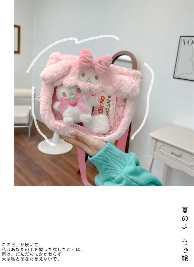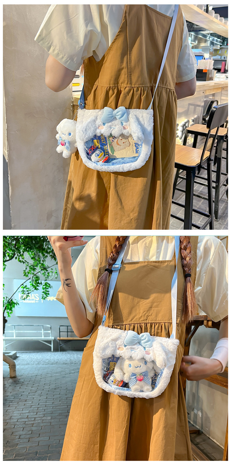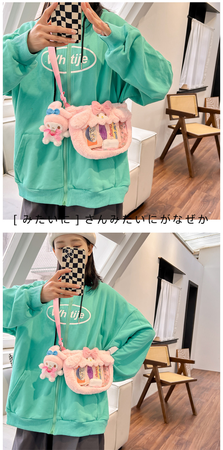 귀여운 작은 핑크 토끼 소녀 반투명 통증 가방 크로스 바디 비주얼 벨트 인형 잔해물 보관 가방 학생 숄더백