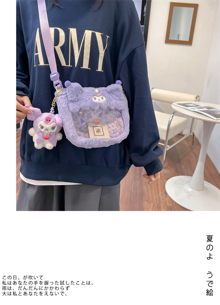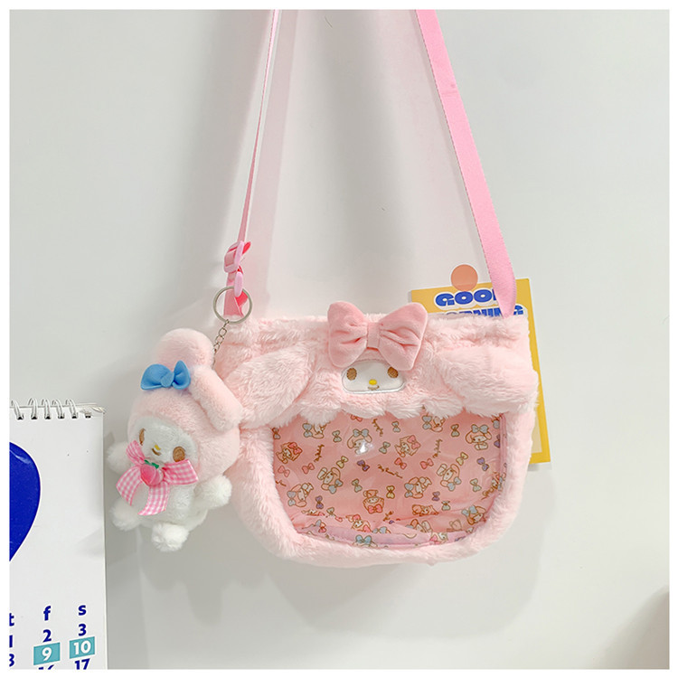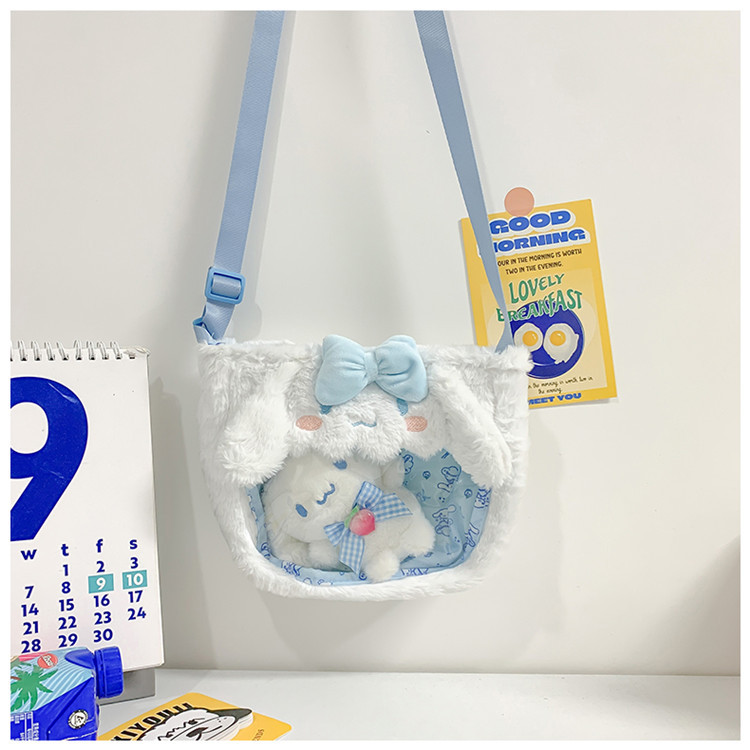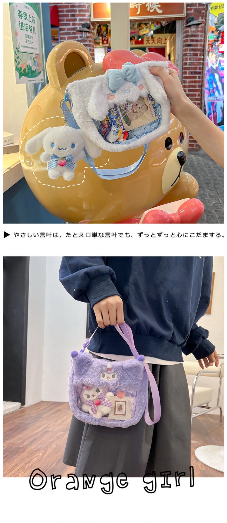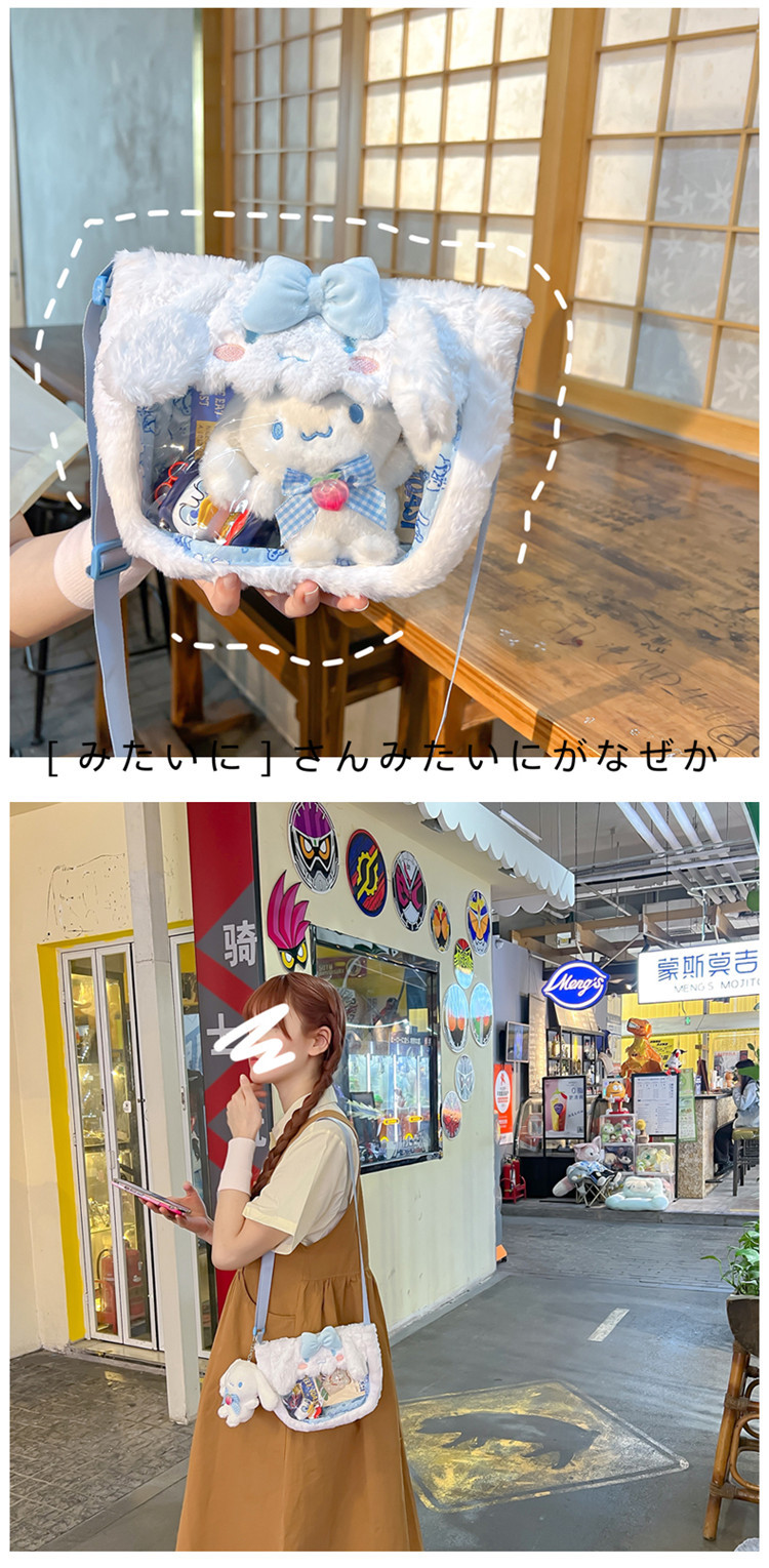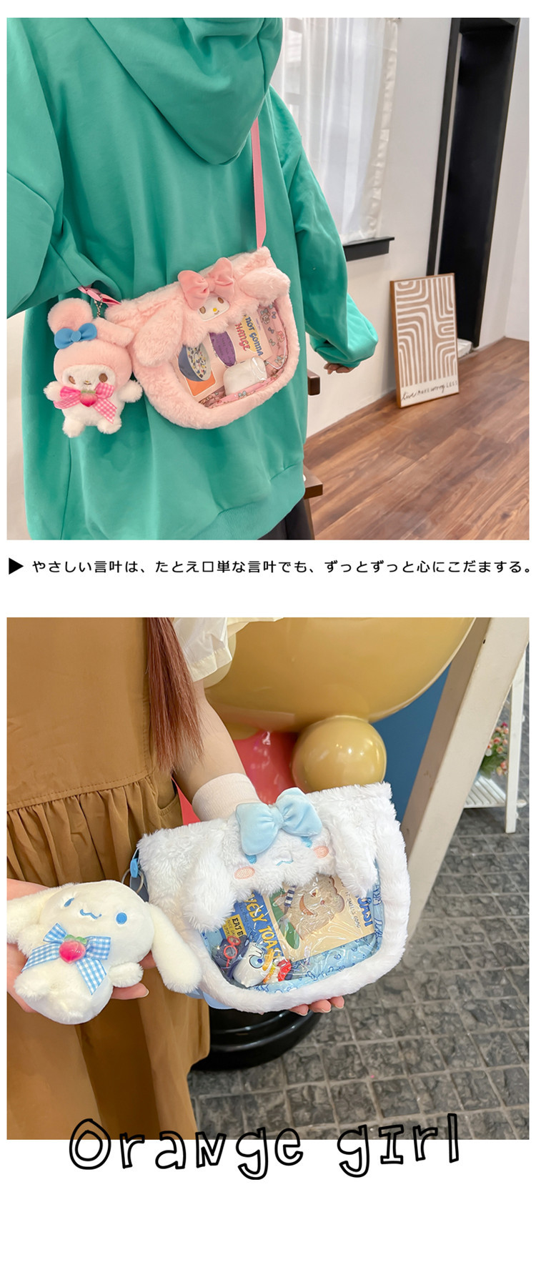 귀여운 작은 핑크 토끼 소녀 반투명 통증 가방 크로스 바디 비주얼 벨트 인형 잔해물 보관 가방 학생 숄더백