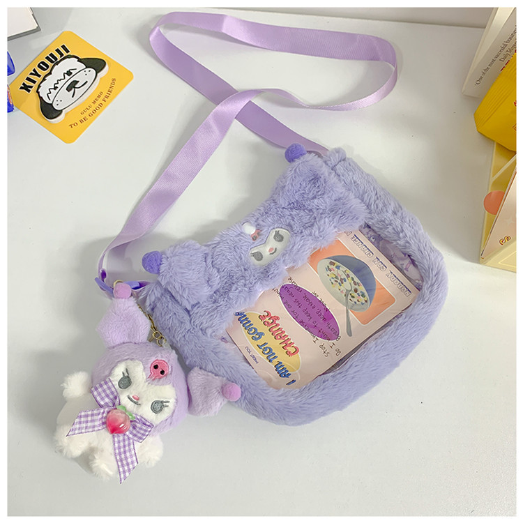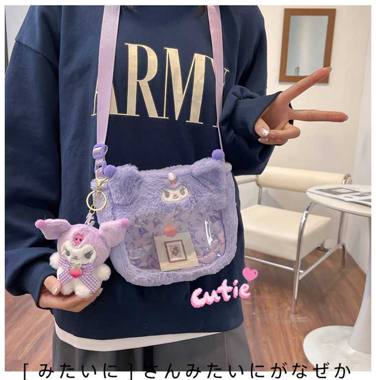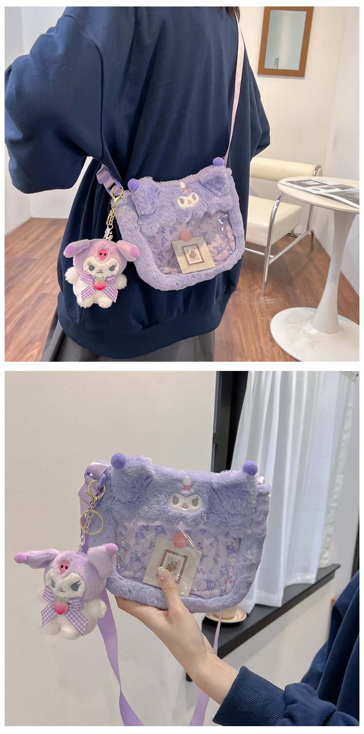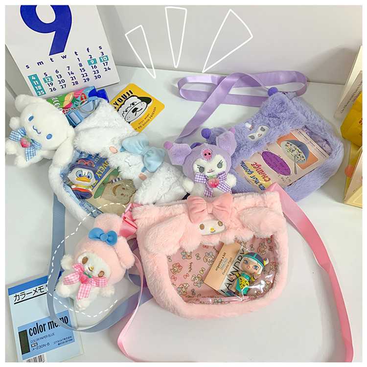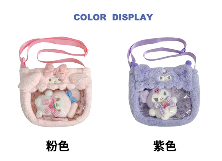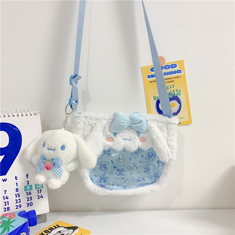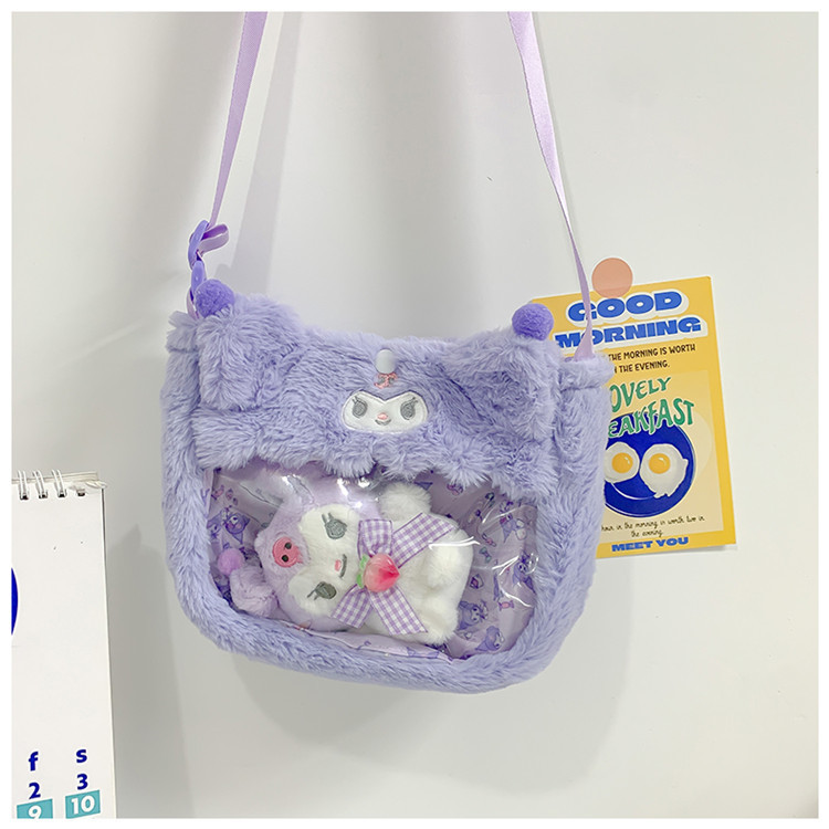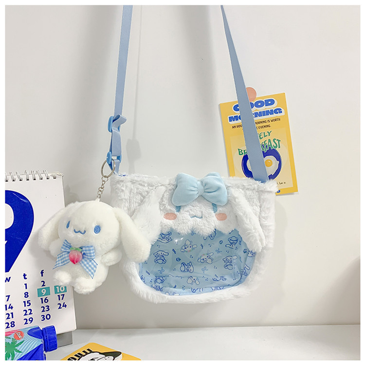 귀여운 작은 핑크 토끼 소녀 반투명 통증 가방 크로스 바디 비주얼 벨트 인형 잔해물 보관 가방 학생 숄더백