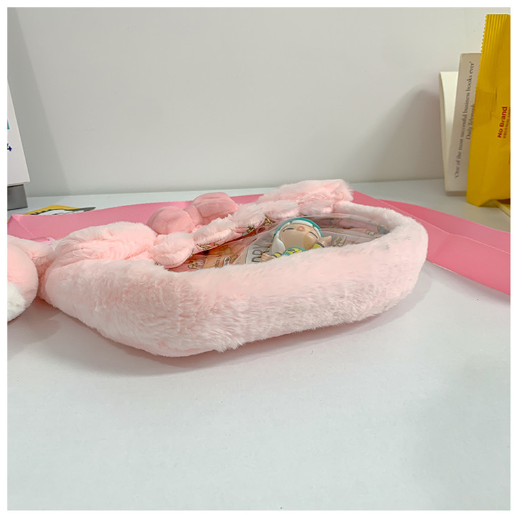 귀여운 작은 핑크 토끼 소녀 반투명 통증 가방 크로스 바디 비주얼 벨트 인형 잔해물 보관 가방 학생 숄더백스토어 가기
