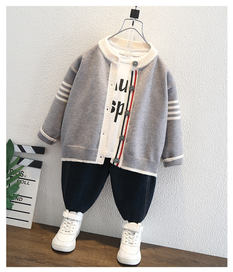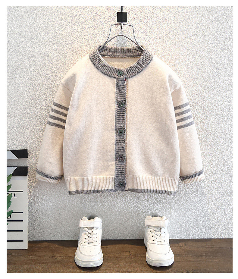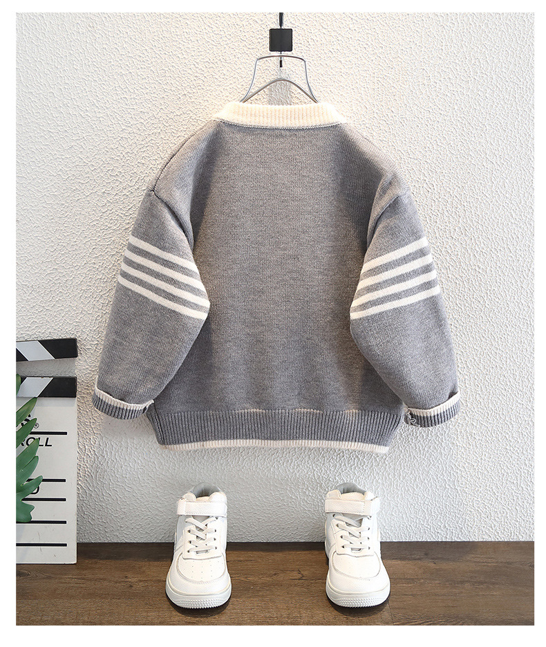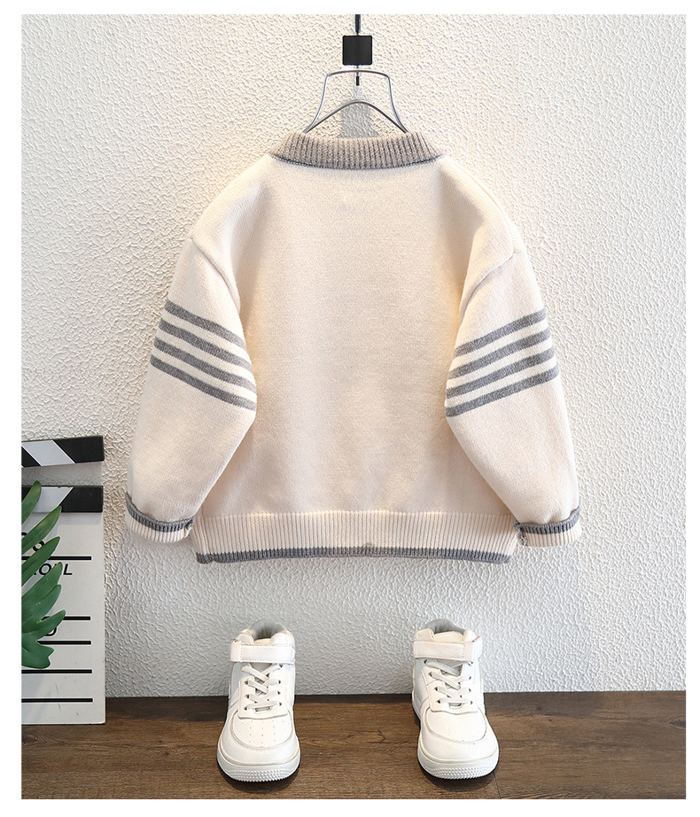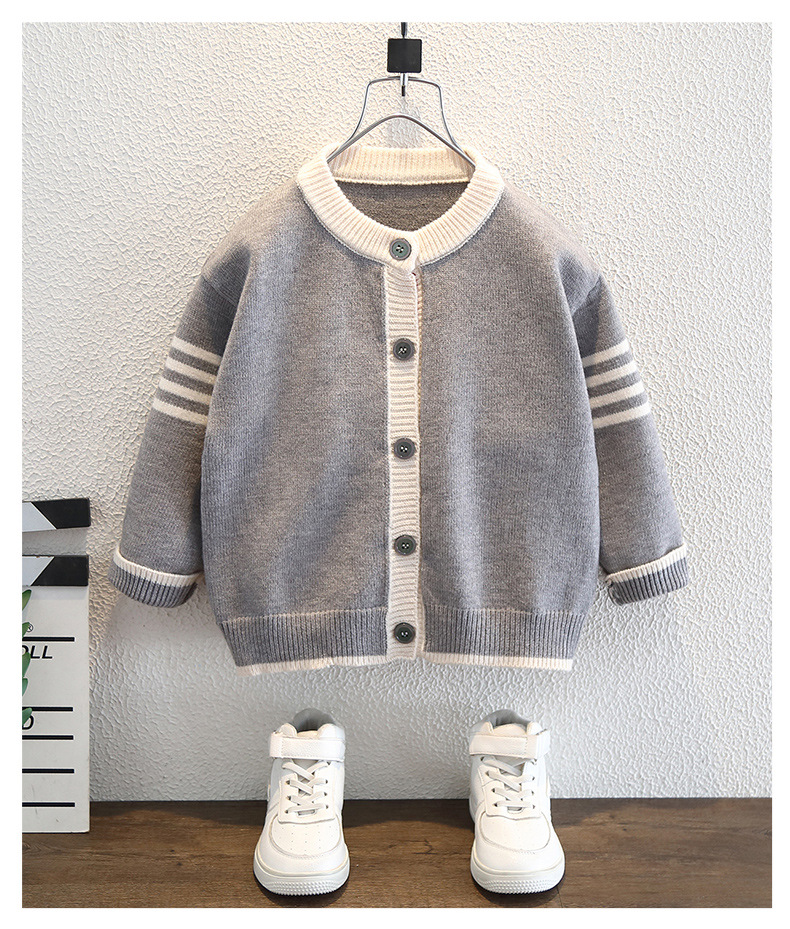 어린이 카디건 스웨터 2025 봄과 가을 새로운 패션 유행 니트웨어 리본 컬러 매칭 소년의 스웨터 코트 트렌디스토어 가기