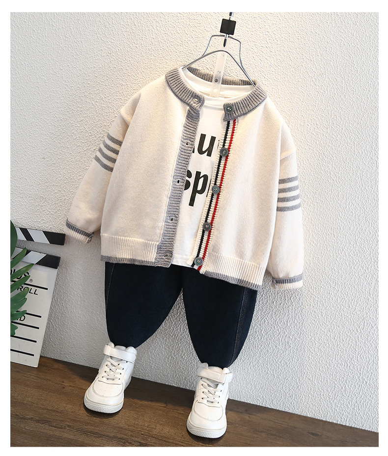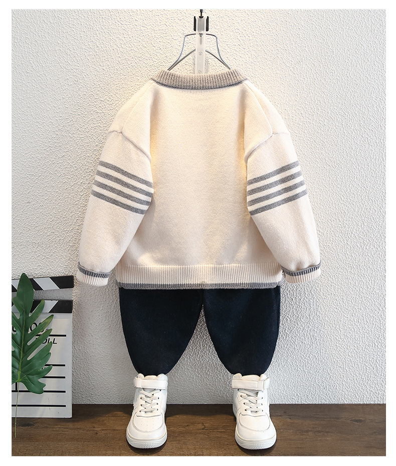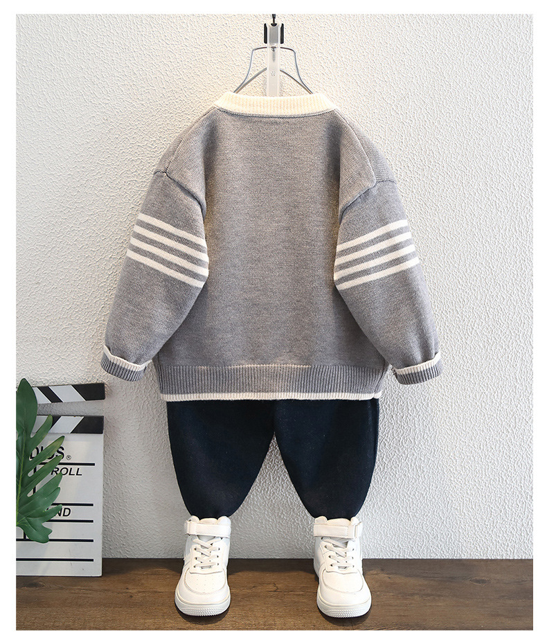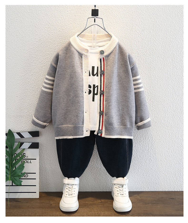 어린이 카디건 스웨터 2025 봄과 가을 새로운 패션 유행 니트웨어 리본 컬러 매칭 소년의 스웨터 코트 트렌디스토어 가기