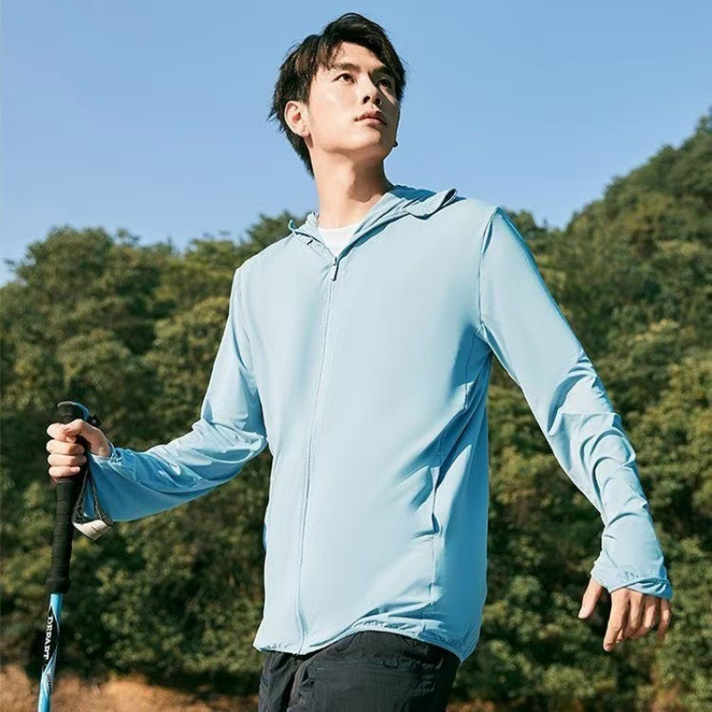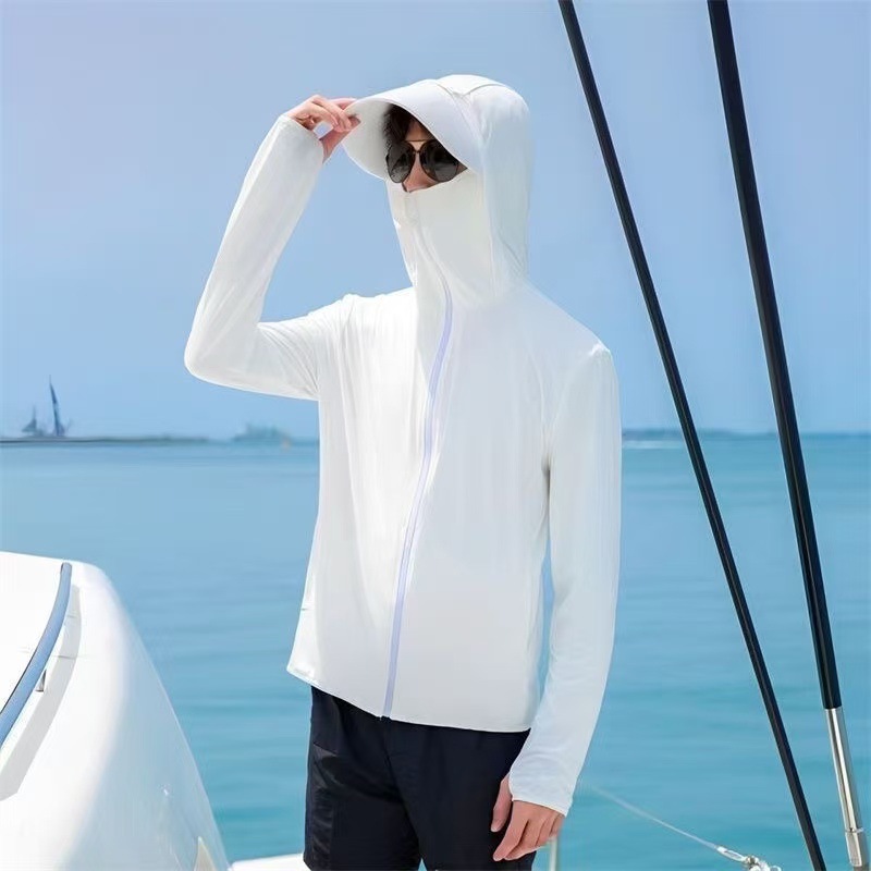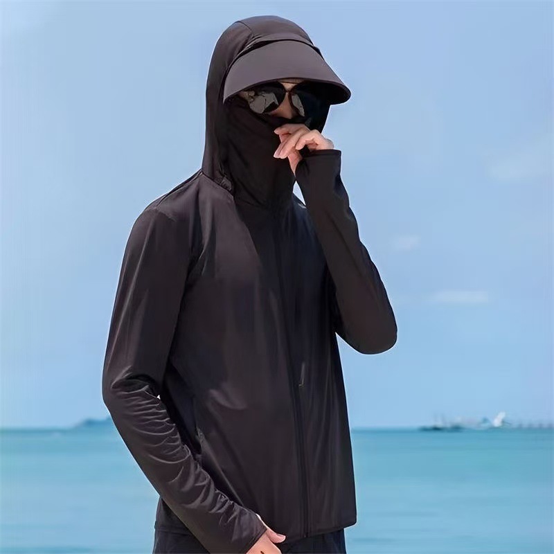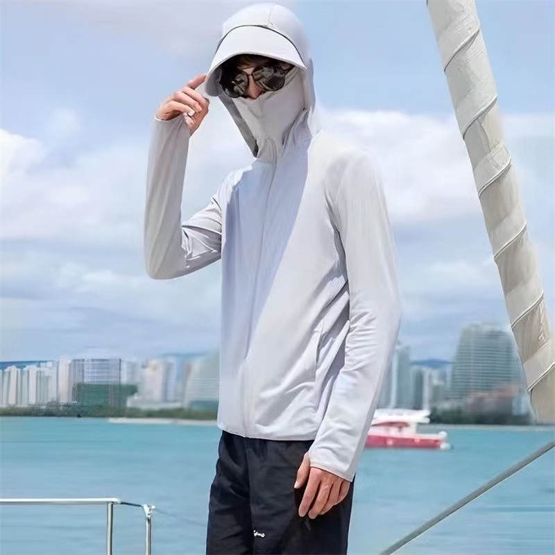 여름 빠른 건조 얼음 실크 선 스크린 의류 남성의 자외선 보호 얇은 통기성 선 스크린 의류 야외 승마 낚시 재킷
