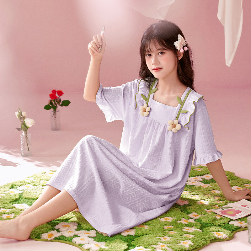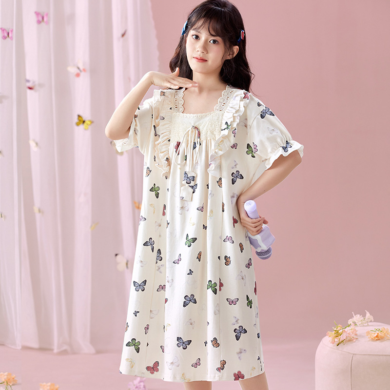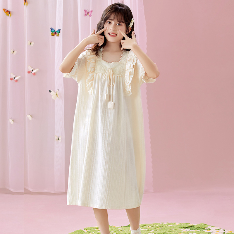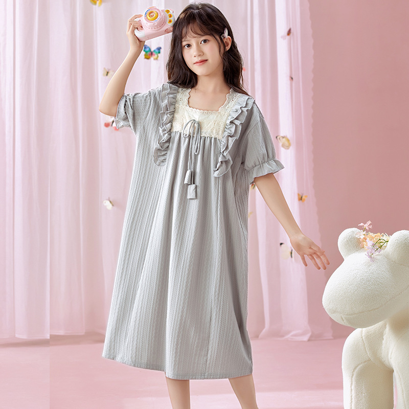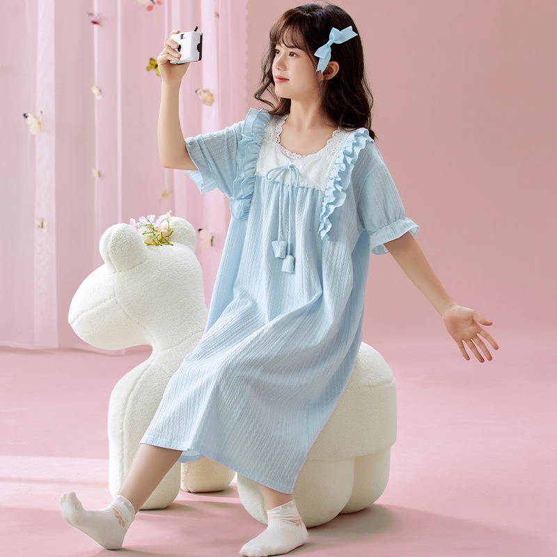 소녀 나이트 드레스 어린이 잠옷 2025 년 여름 새로운 도착 반팔 공주 빅보이 소녀의 원피스 에어컨 원피스스토어 가기