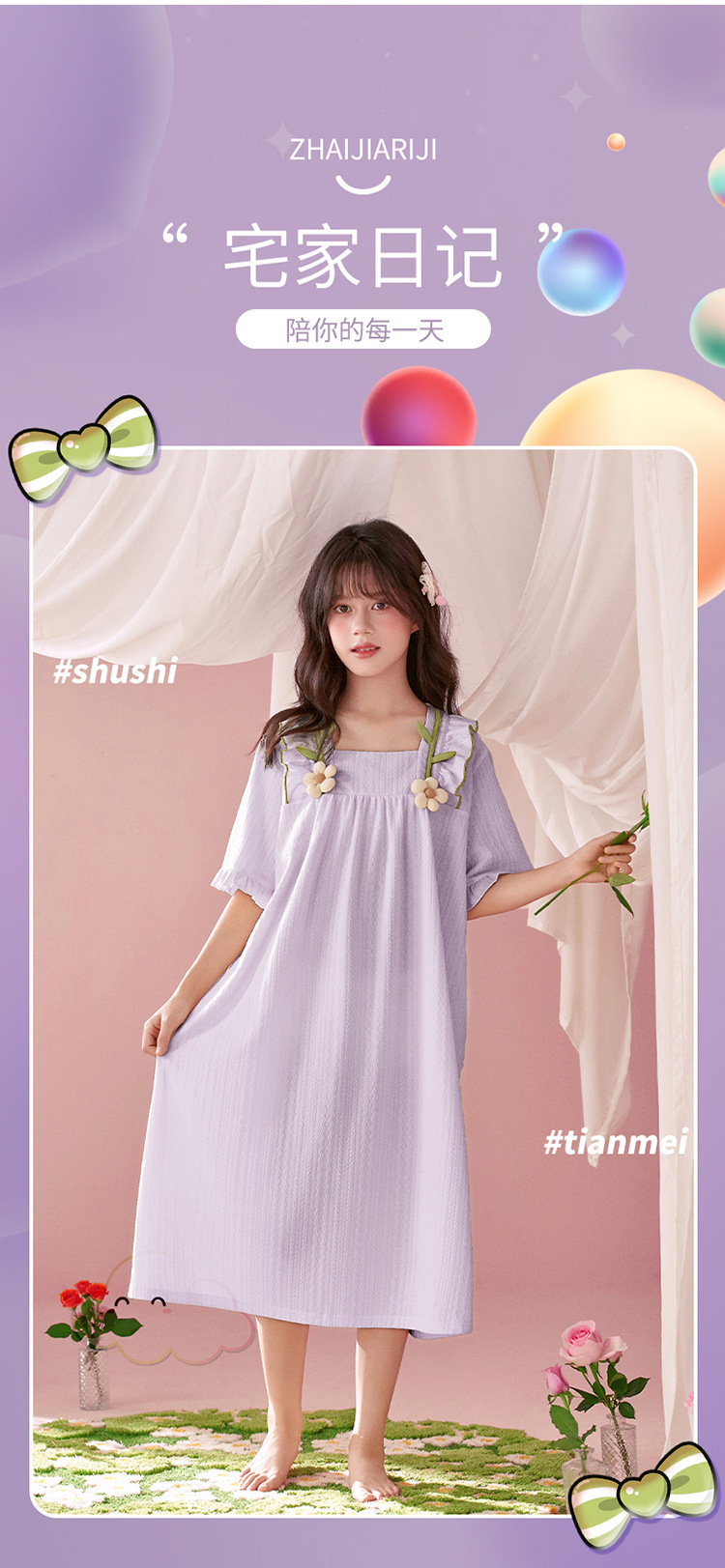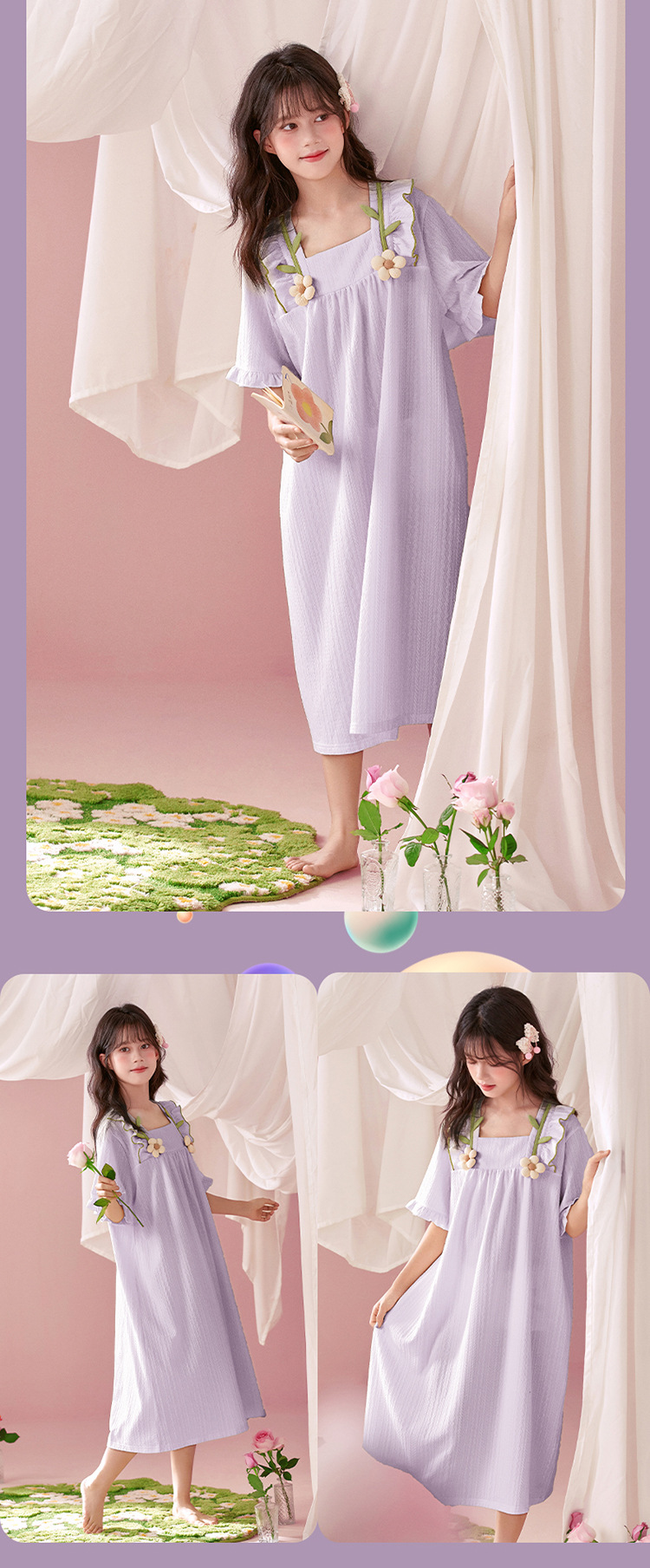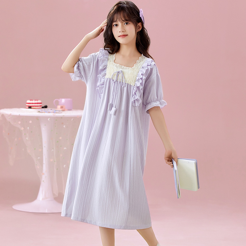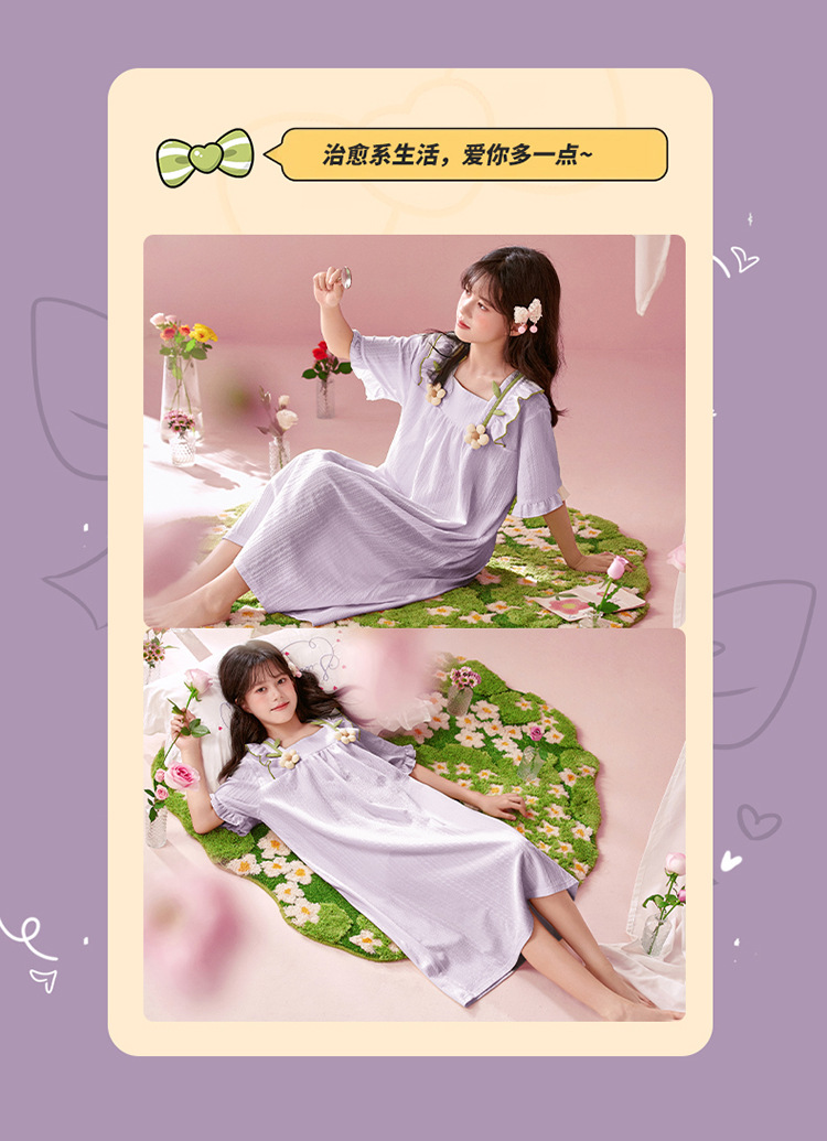 소녀 나이트 드레스 어린이 잠옷 2025 년 여름 새로운 도착 반팔 공주 빅보이 소녀의 원피스 에어컨 원피스스토어 가기