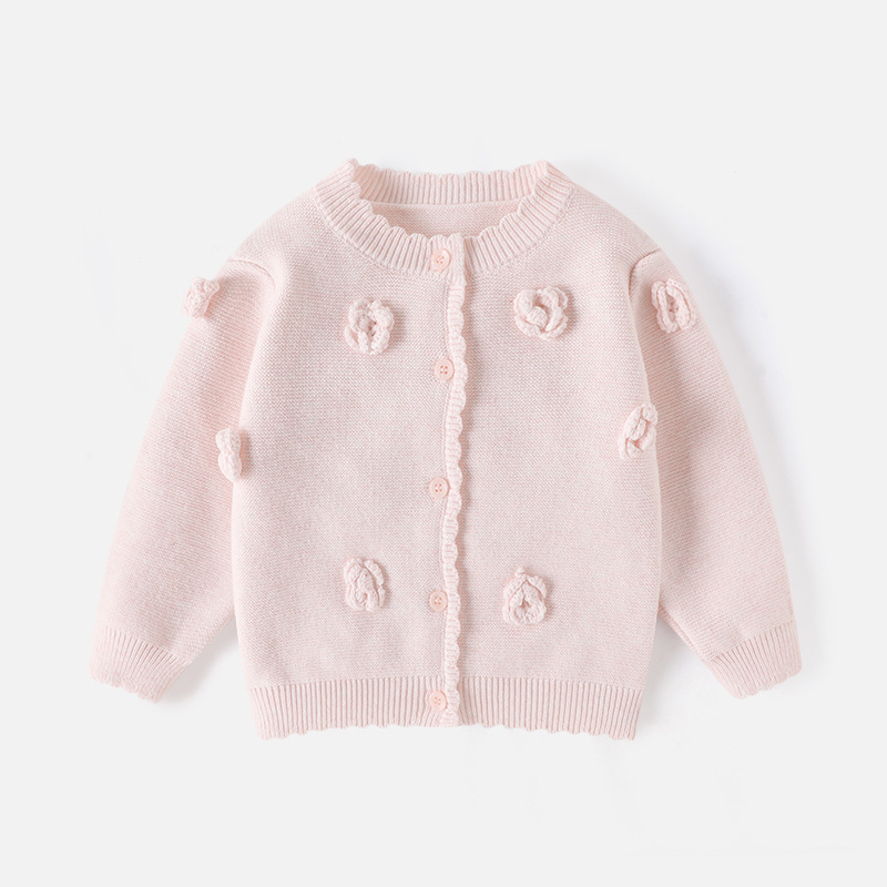 여자 스웨터 카디건 수제 3 차원 꽃 니트 스웨터 라운드 넥 탑 솔리드 컬러 따뜻한 재킷 베이비 걸스 스웨터