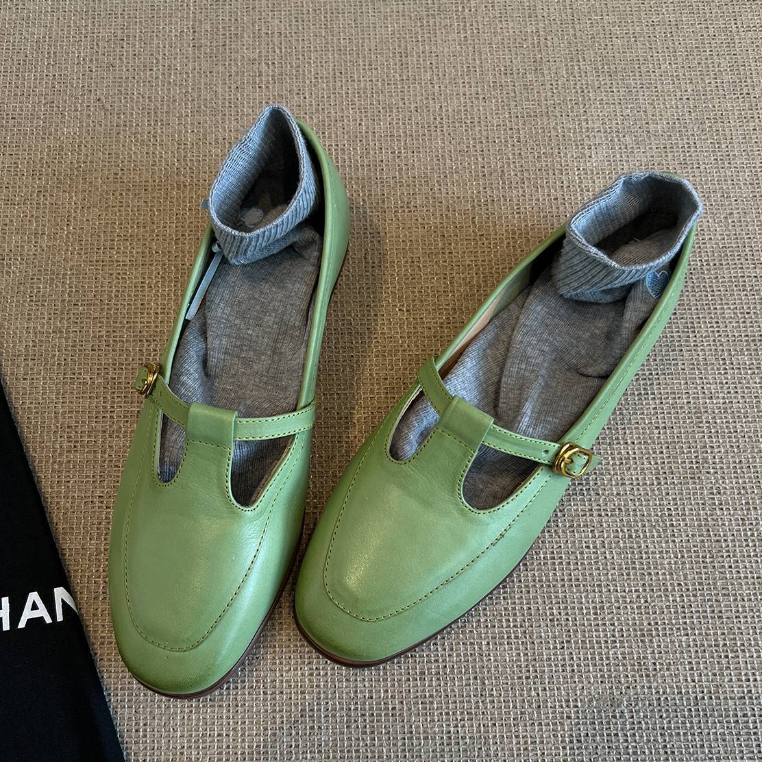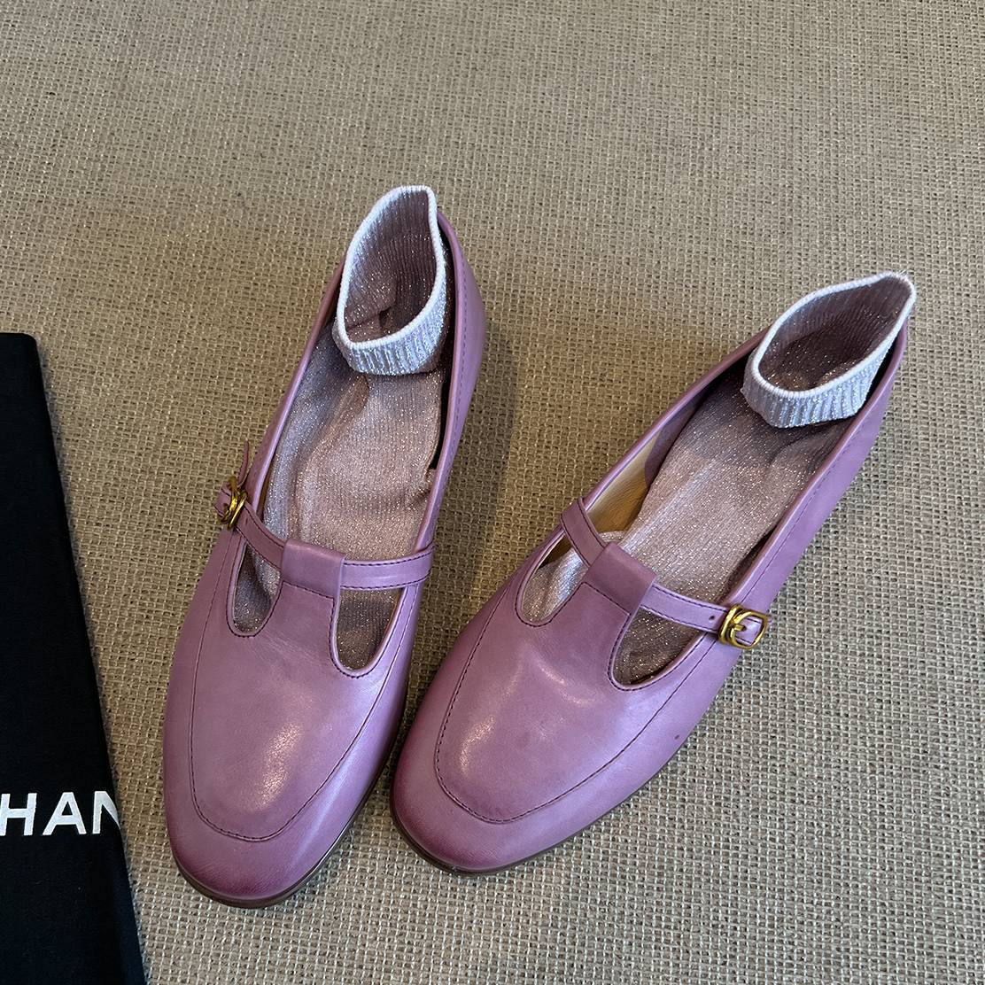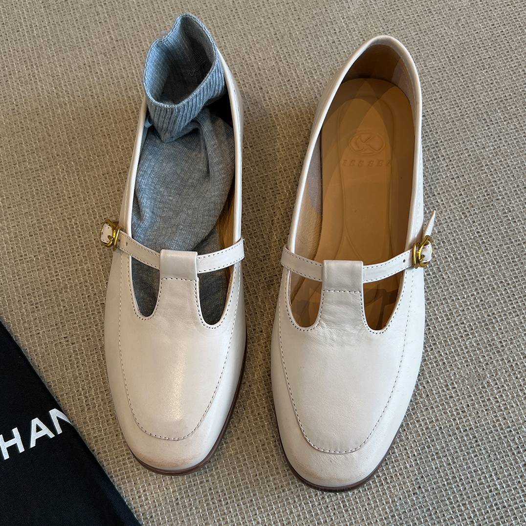 Cowhide 버전 ~ T 간단한 둥근 머리 메리 제인 증가 5CM 낮은 뒤꿈치 신발 2025 패션 얕은 입 신발 여성스토어 가기