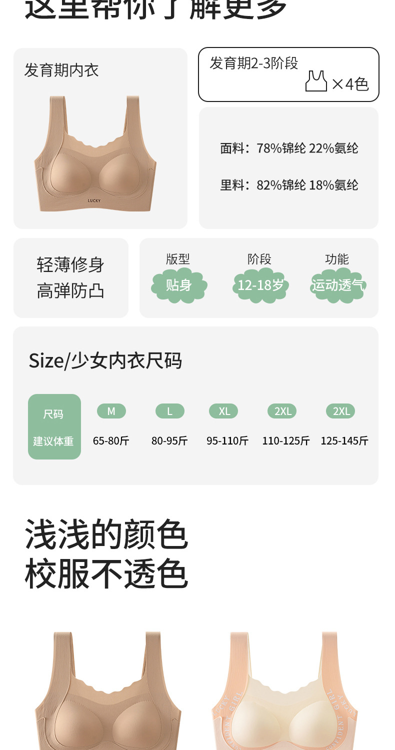발달기 여학생 속옷, 여중생 12-18세, 스포츠 브라, 무봉제 통기성 여아용 조끼스토어 가기