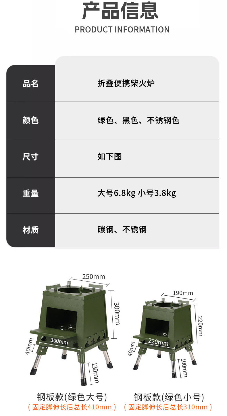 Yancan 야외 캠핑 파고다 스토브 장작 난로 캠핑 간이 스토브 분리형 장작 난로 제조업체 도매 스토브