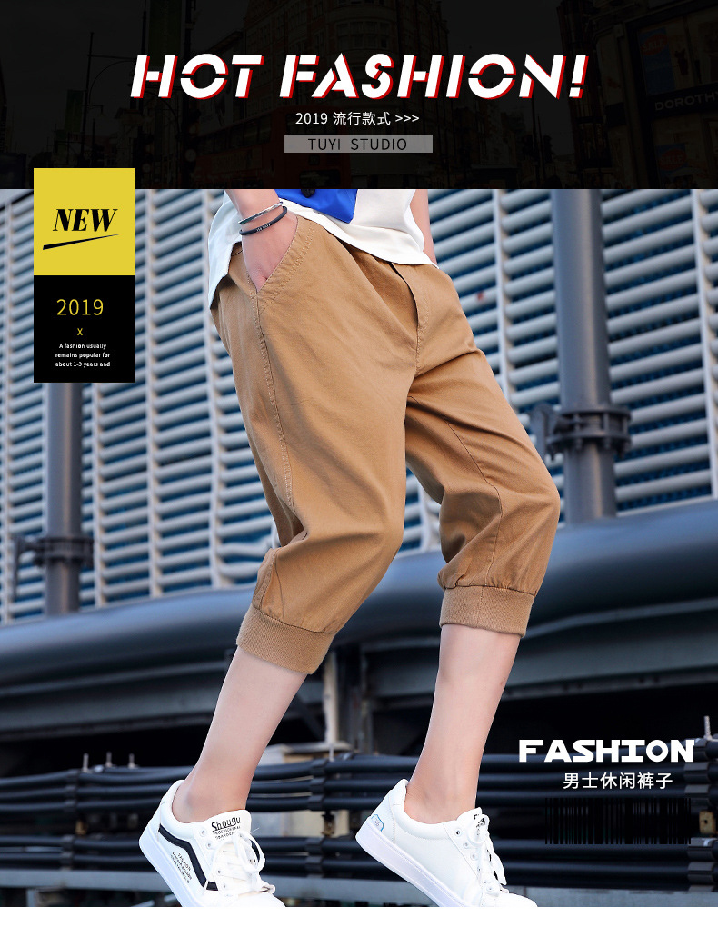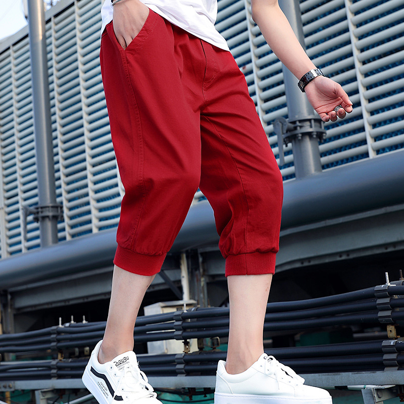 대외 무역 여름 카프리 바지 남성용 반바지 느슨한 캐주얼 바지 여름 솔리드 컬러 트렌디 하렌 바지 남성용 반바지 외주스토어 가기