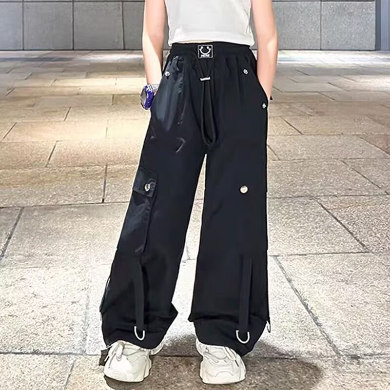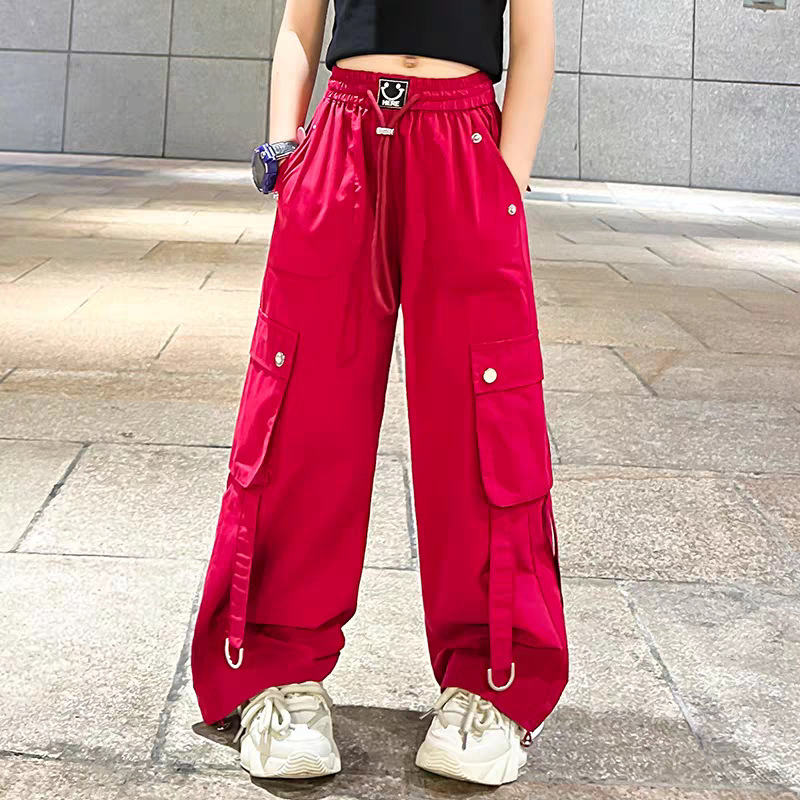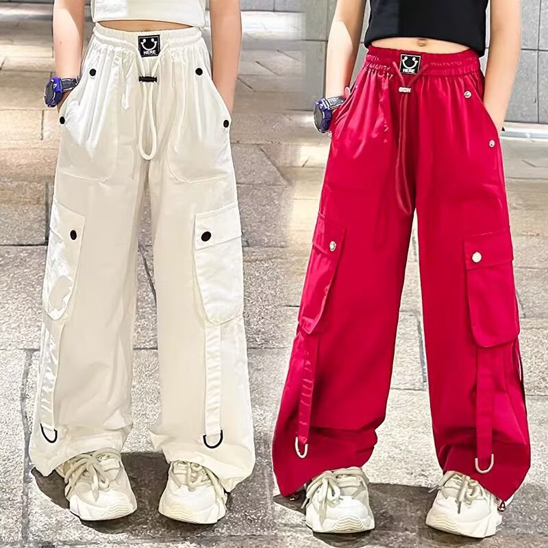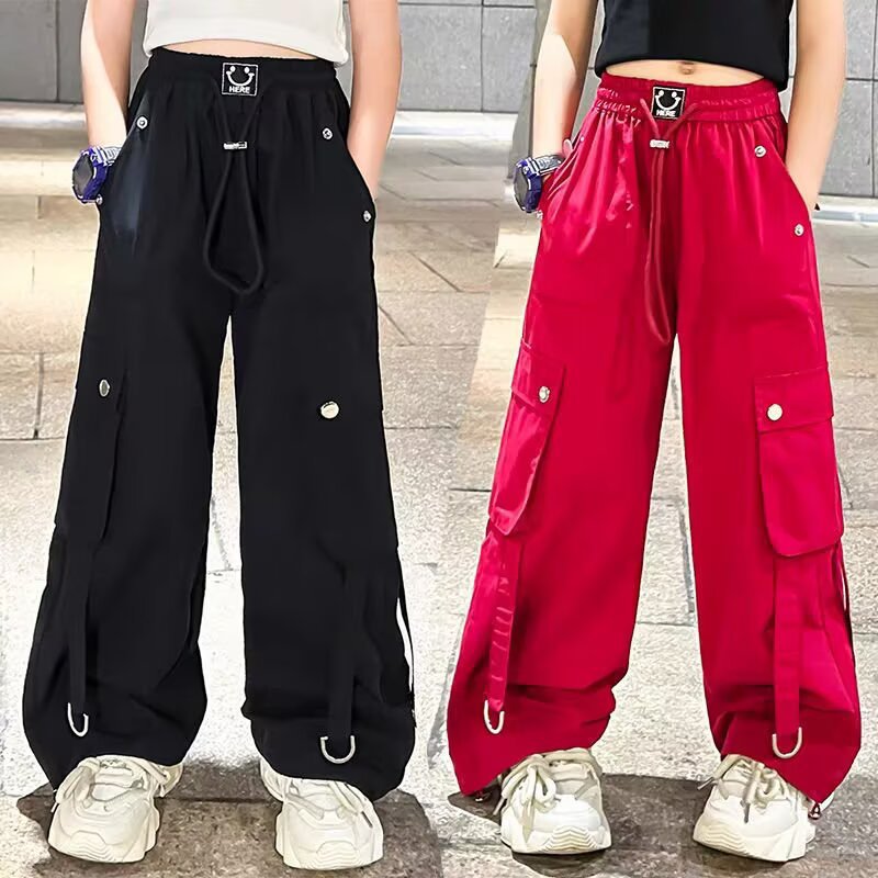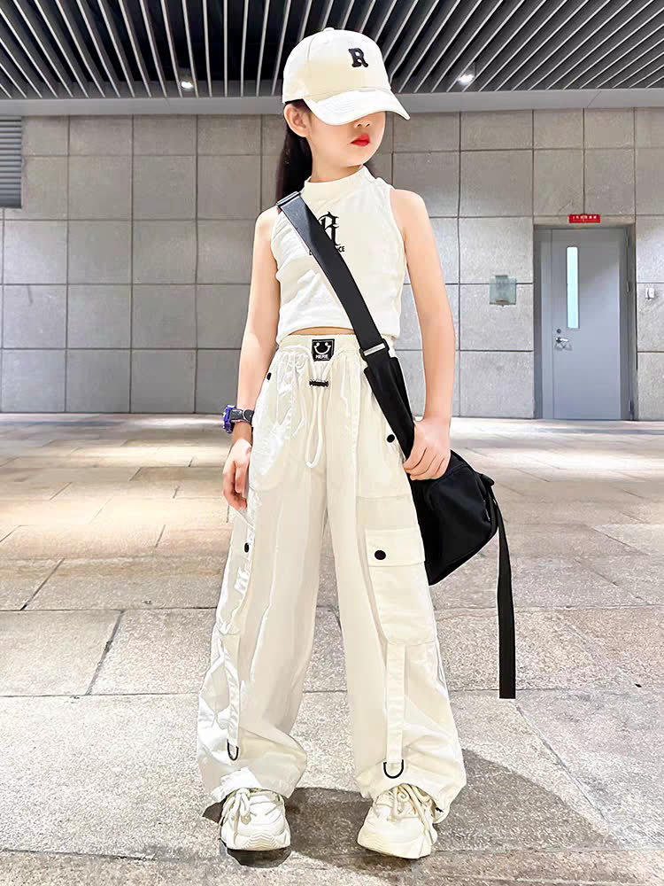 소녀 크레인 바지 디자인 센스 2025 바지 큰 어린이 여름 캐주얼 바지 스트리트 댄스 와이드 레그 바지 힙합 트렌디 바지