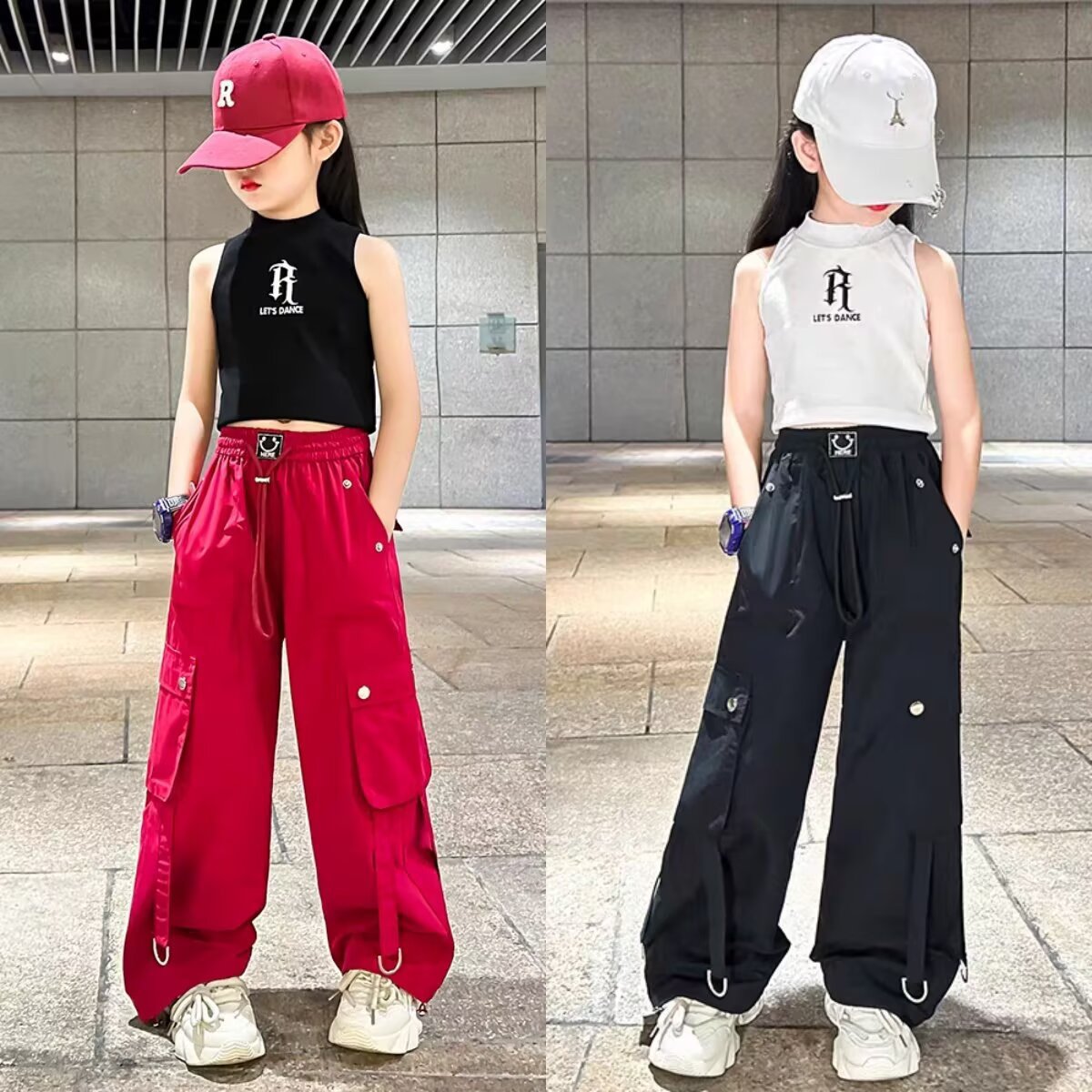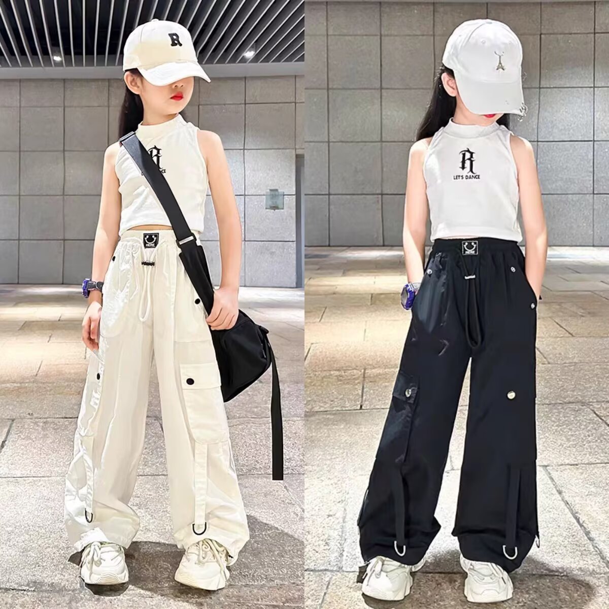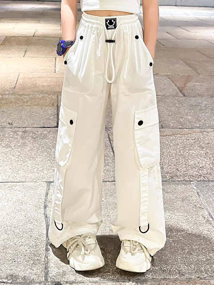 소녀 크레인 바지 디자인 센스 2025 바지 큰 어린이 여름 캐주얼 바지 스트리트 댄스 와이드 레그 바지 힙합 트렌디 바지