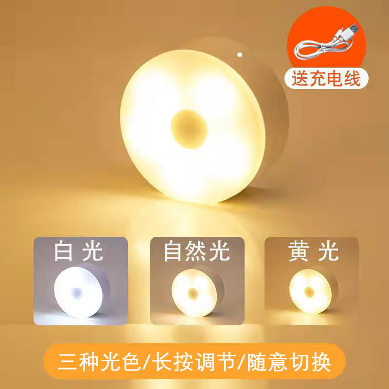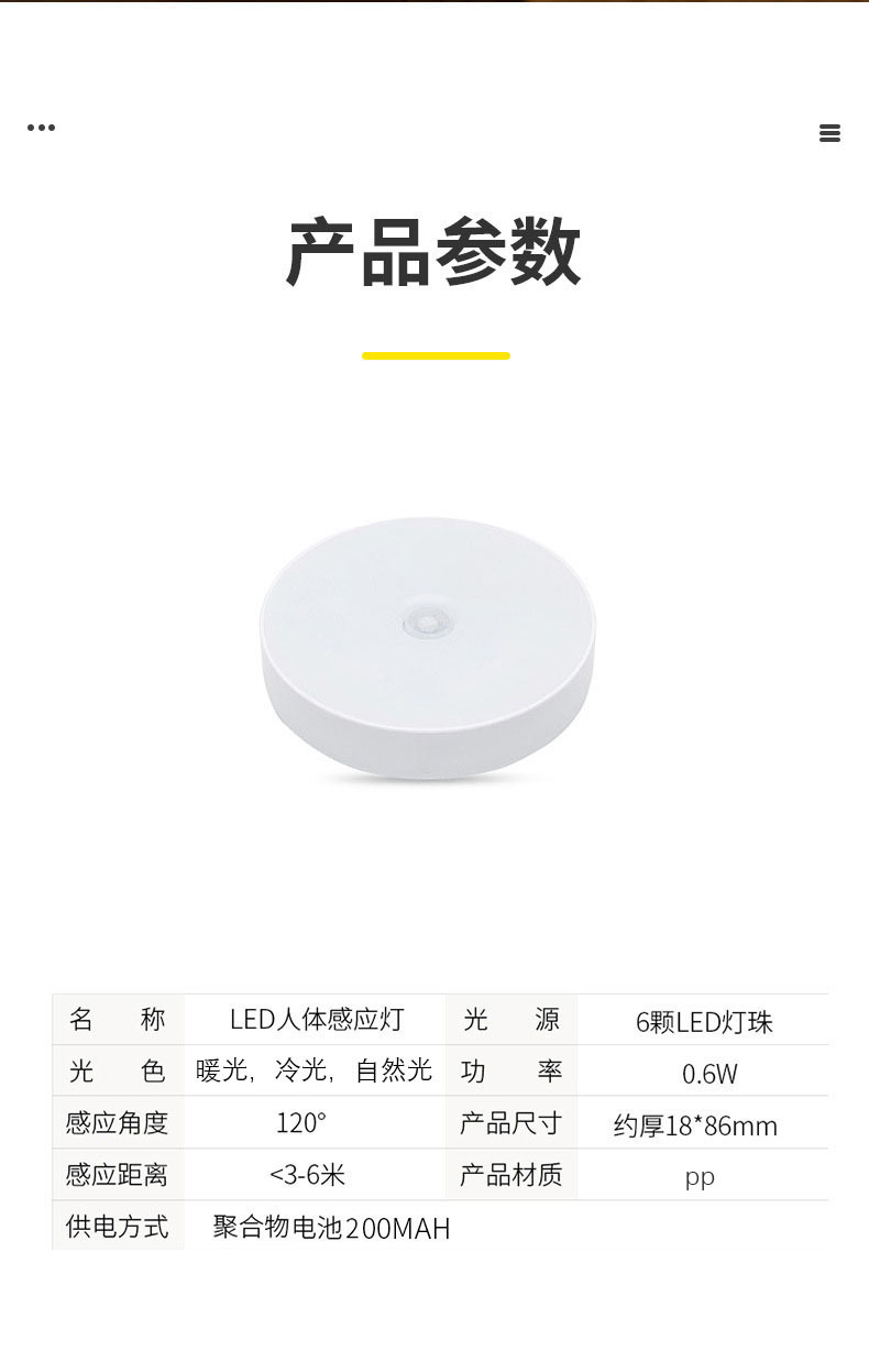 产品灯光使用说明:按一下变颜色,分别是白光,暖光,中性光,关灯;按住两秒闪两下就是有人就感应模式,按住两秒闪一下就是常量模式感应模式,闪三下就是晚上感应模式,如果要调到晚上感应模式就需要长按三次,长按两秒的一次是闪两下为感应模式,长按两秒第二次是闪一下为常量模式,长按两秒第三次是闪三下为晚上感应模式。
