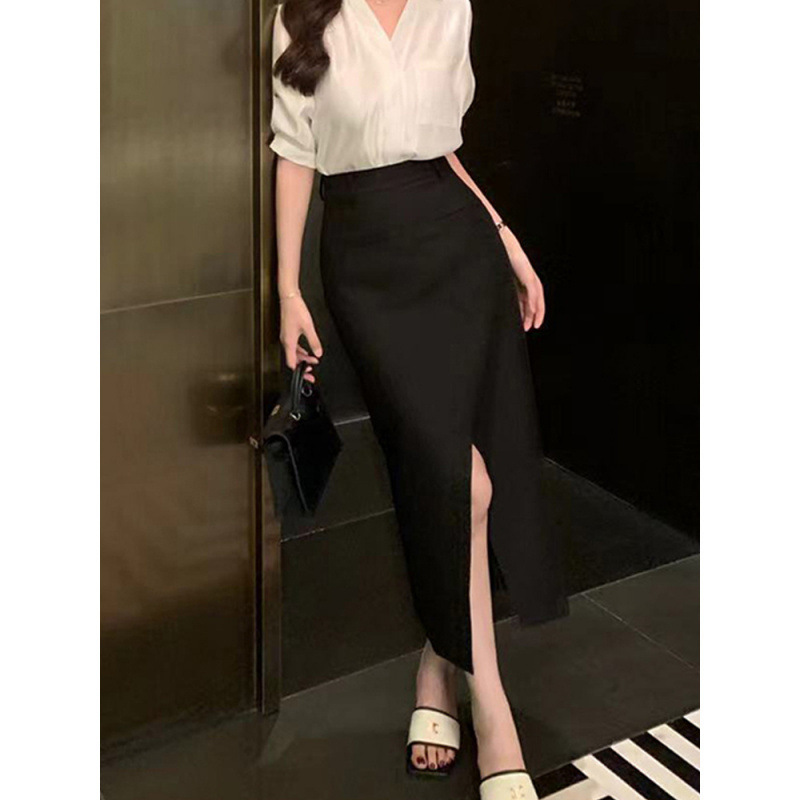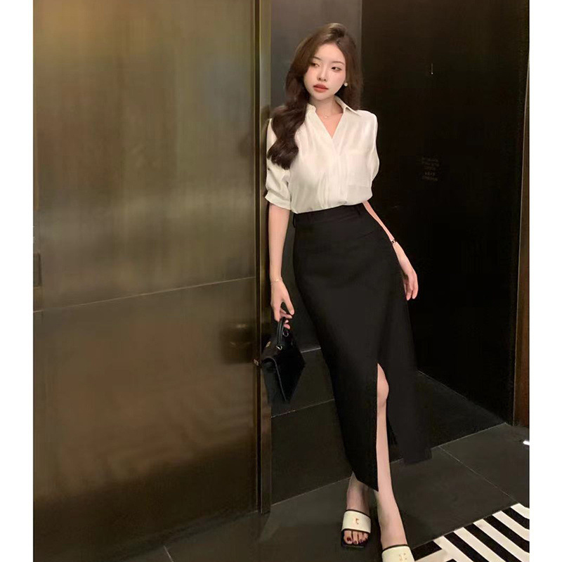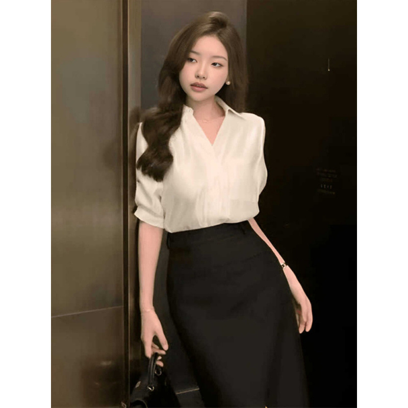 프랑스 스타일 우아한 세트 원피스 여성 2025 년 여름 새로운 반팔 셔츠 높은 허리 텐트 스커트 투피스 세트
