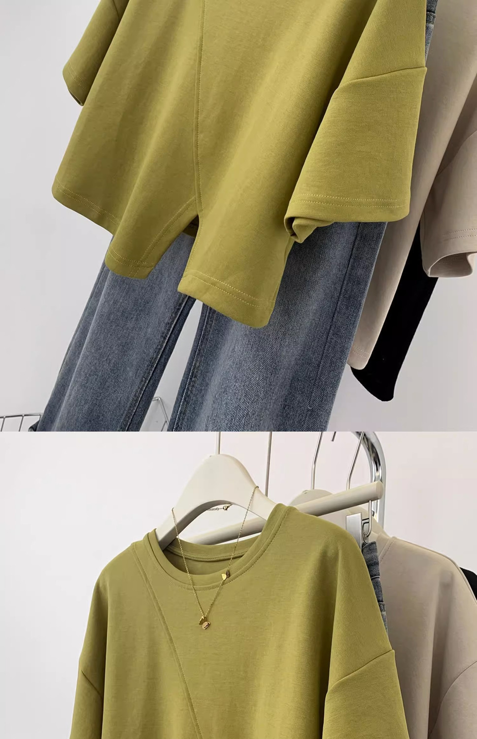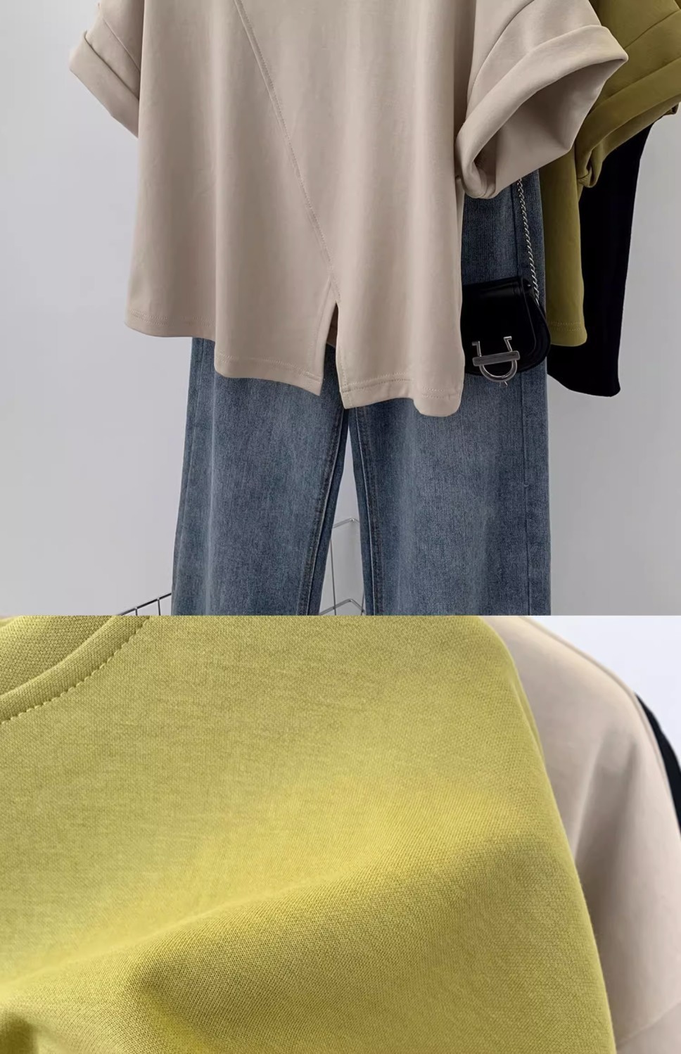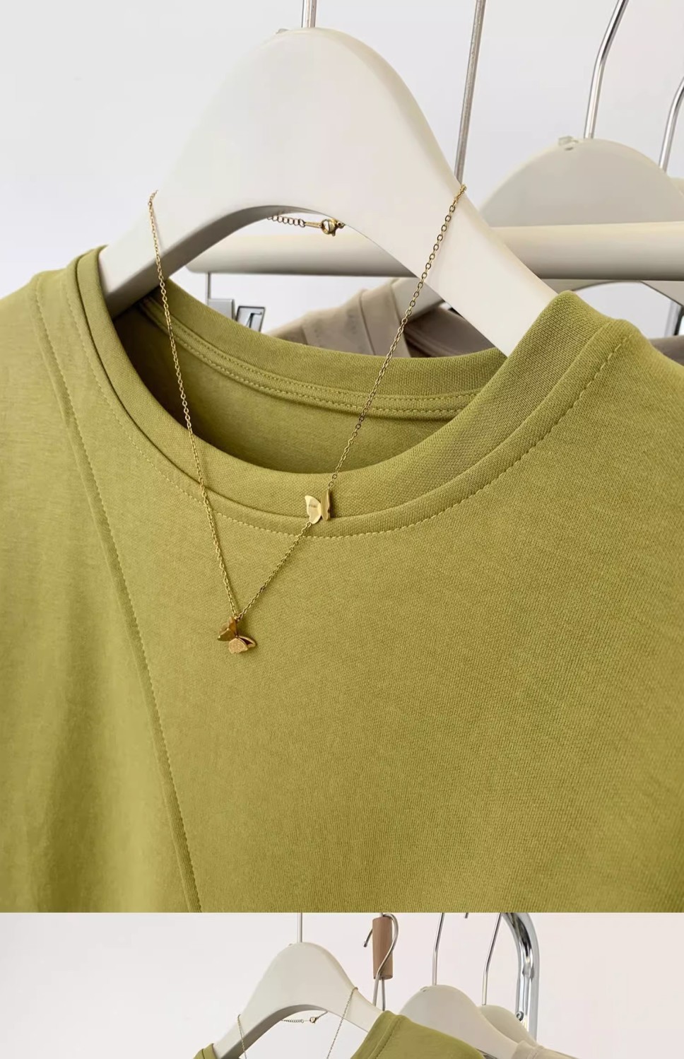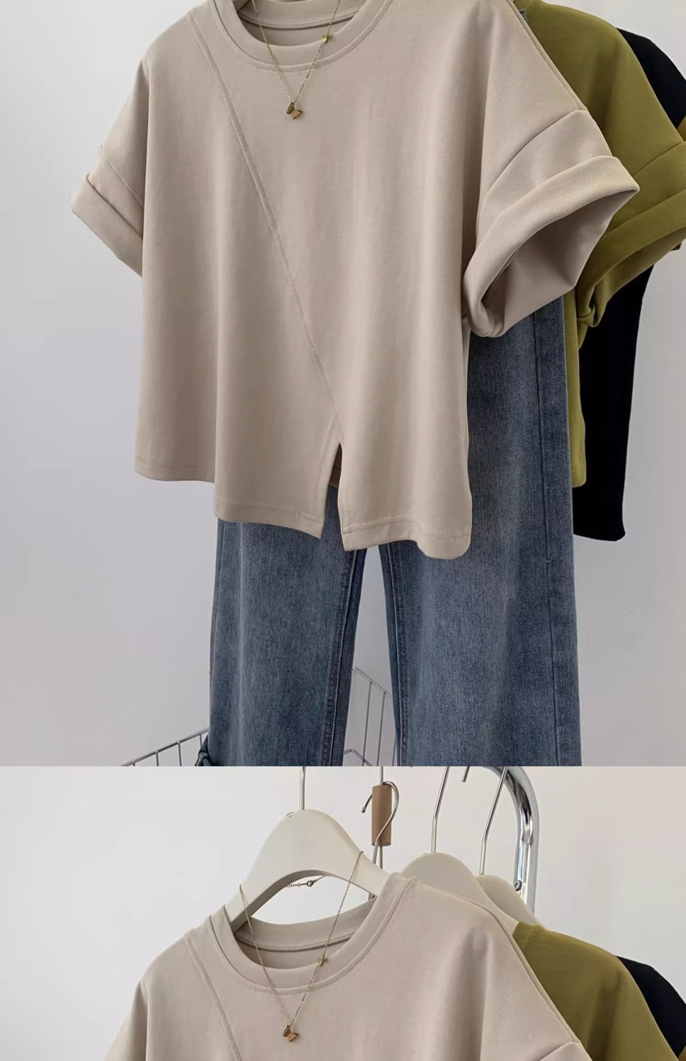 불규칙한 짧은 어깨 반팔 티셔츠 여성 여름 2025 새로운 디자인 센스 작은 어깨 반소매 탑스토어 가기