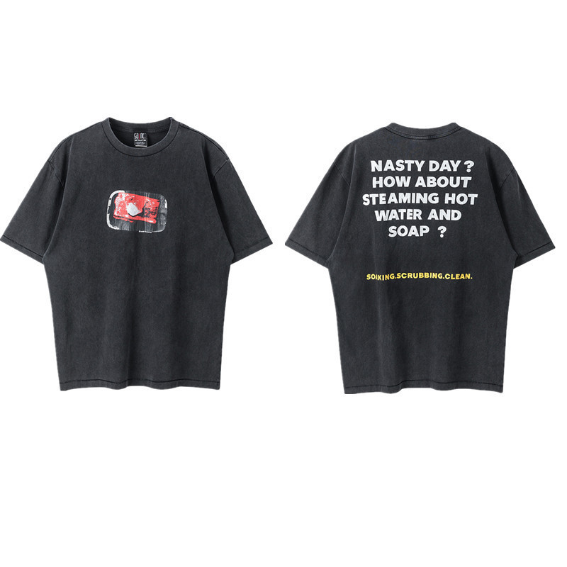 2024 힙합 아메리칸 트렌디 브랜드 남성과 여성을 위한 새로운 레트로 워시 올드 그래피티 루즈하고 다재다능한 라운드 넥 반팔 티셔츠