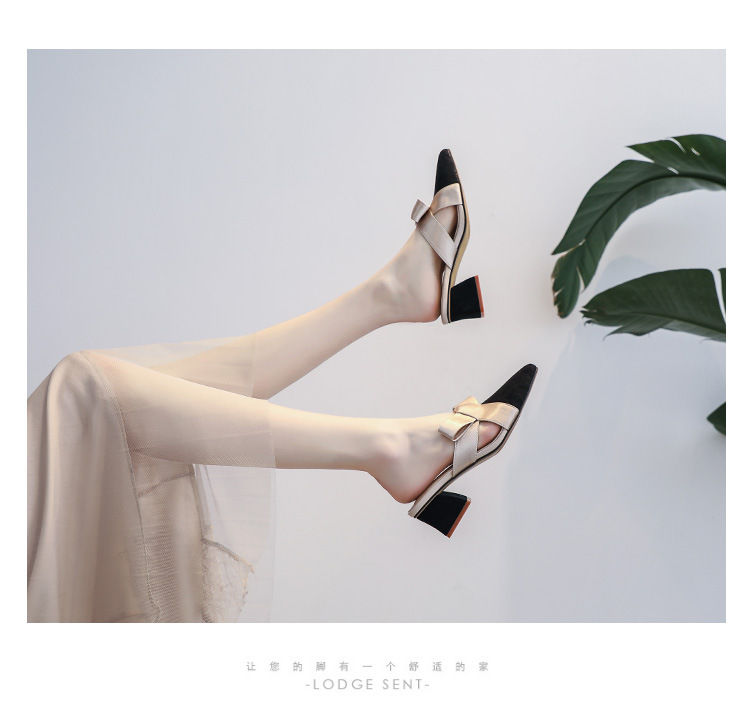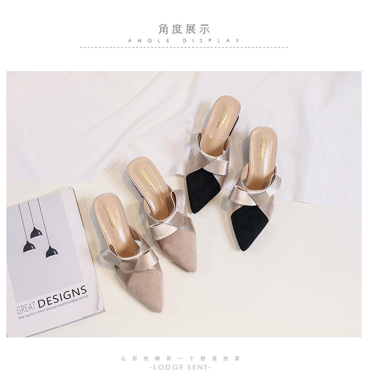 바오터우 슬리퍼 여성용 외부 착용 하프 슬리퍼 2025 여름 새로운 도착 벨트 버클 포인팅 두꺼운 힐 패셔너블 섹시한 하이힐 샌들