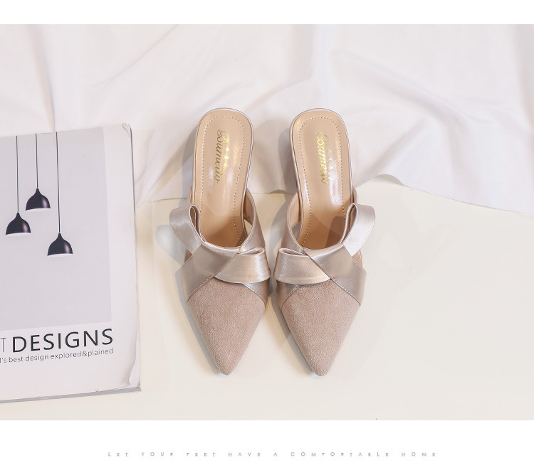 바오터우 슬리퍼 여성용 외부 착용 하프 슬리퍼 2025 여름 새로운 도착 벨트 버클 포인팅 두꺼운 힐 패셔너블 섹시한 하이힐 샌들스토어 가기