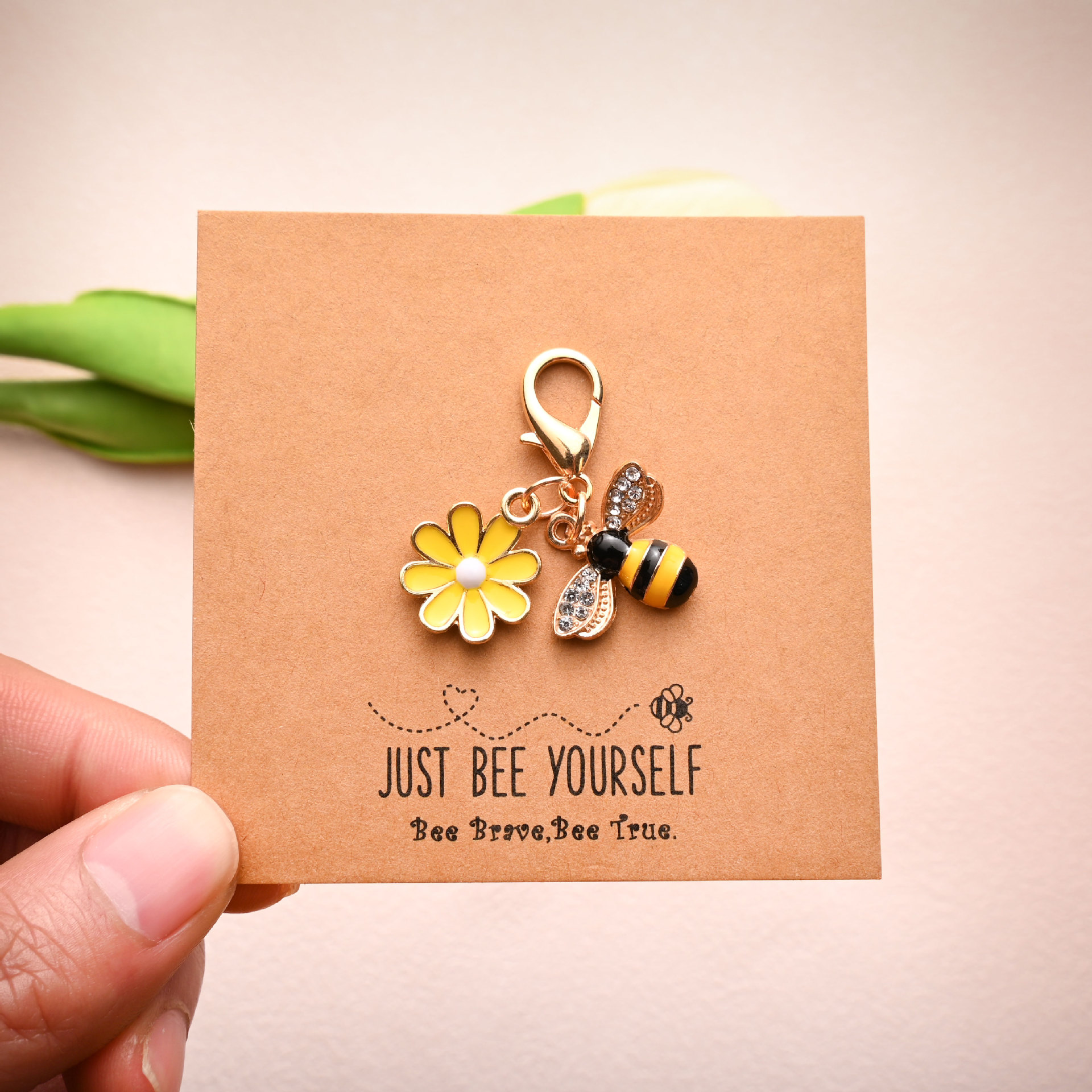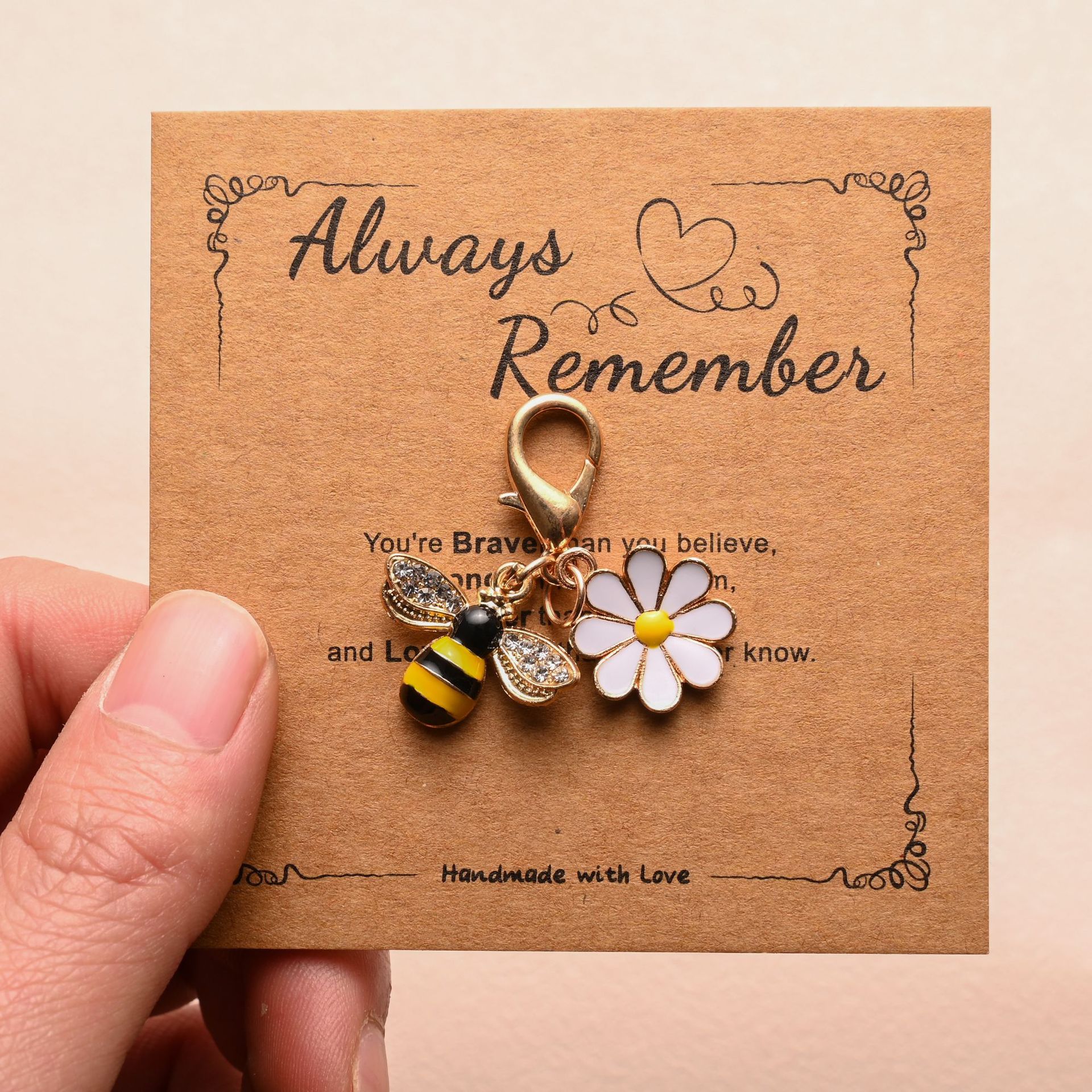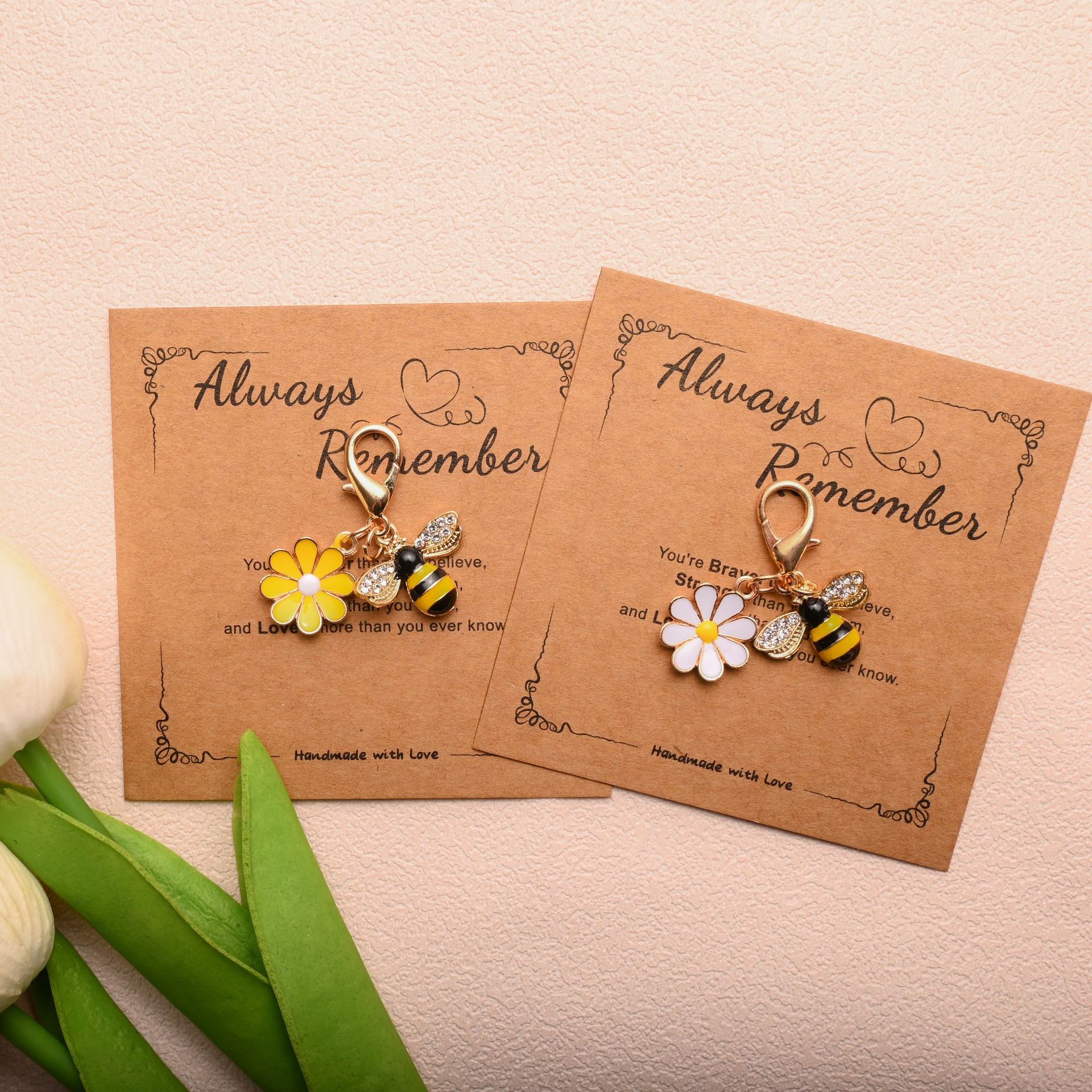 국경 간 뜨거운 판매 AlawaysRemenber 축복 언어 카드 꿀벌 꽃 펜던트 가방 키 체인 장식