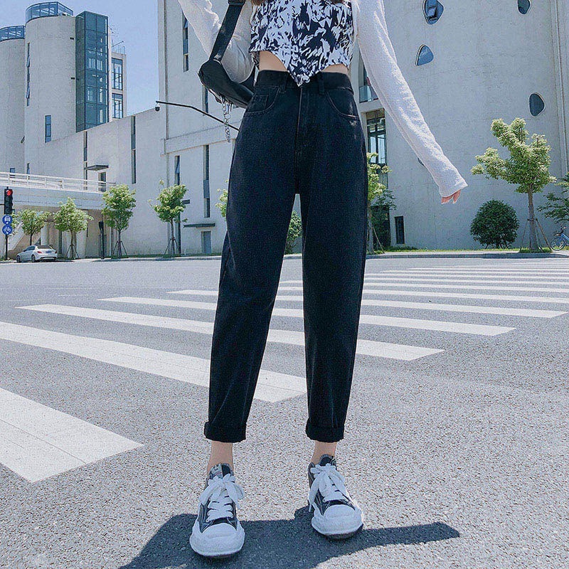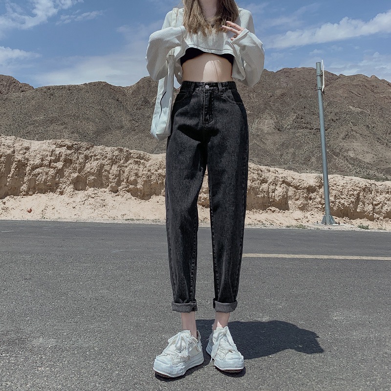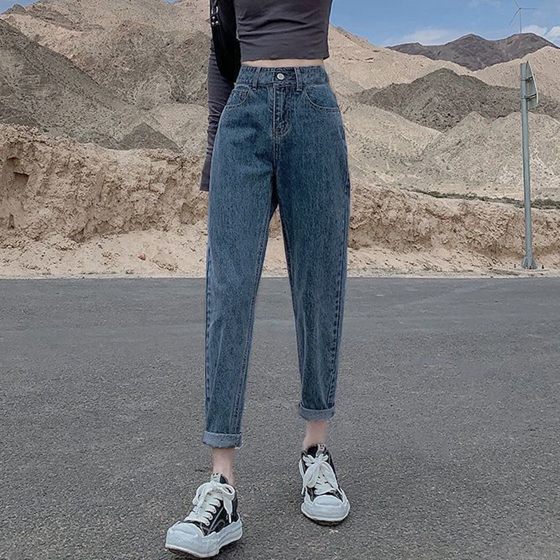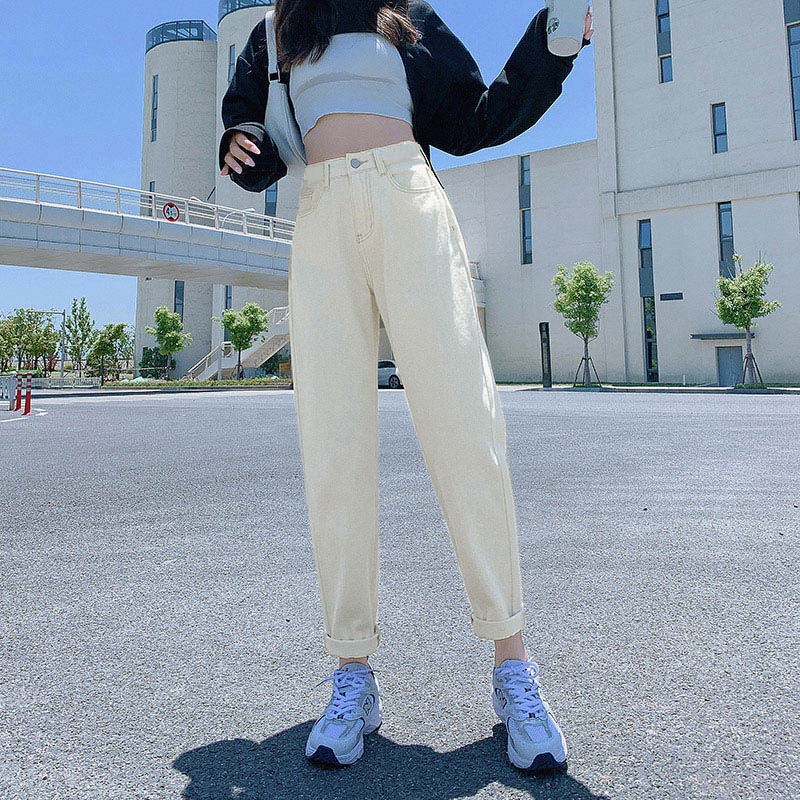 밝은 색 청바지 여성의 봄과 여름 새로운 소금 높은 허리 느슨한 할란 당근 바지 토레를위한 모든 경기 자른 스트레이트 바지스토어 가기
