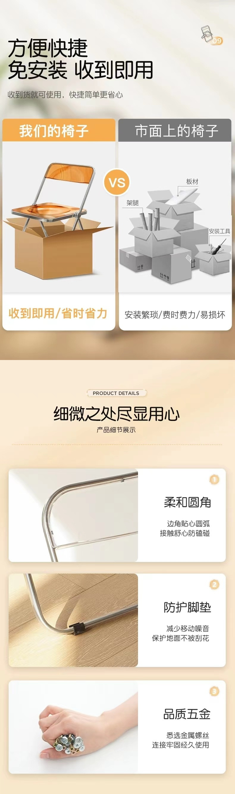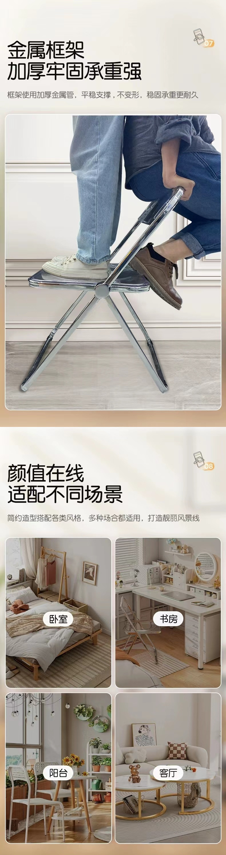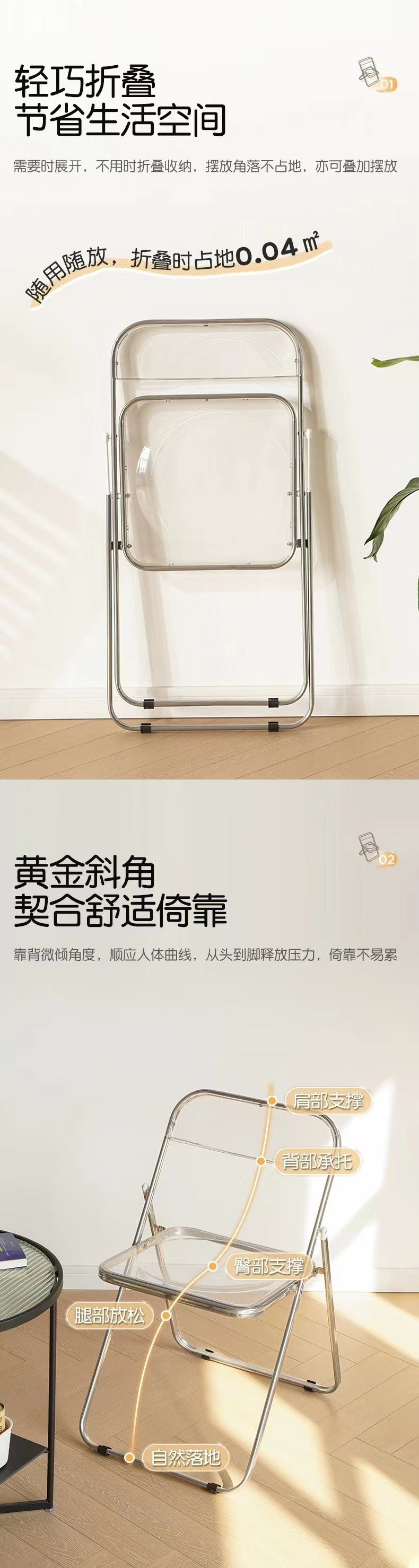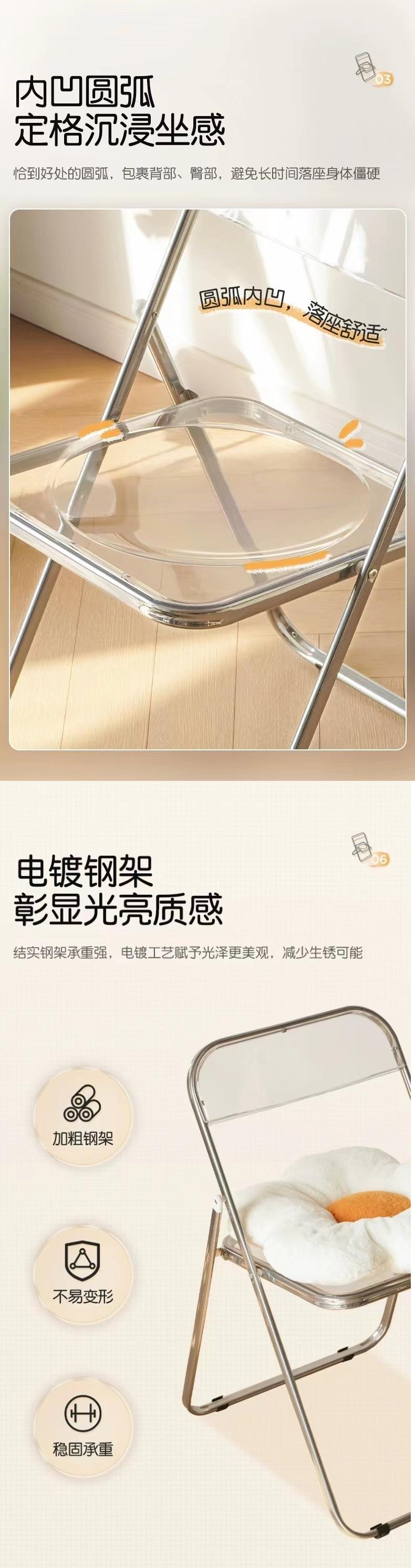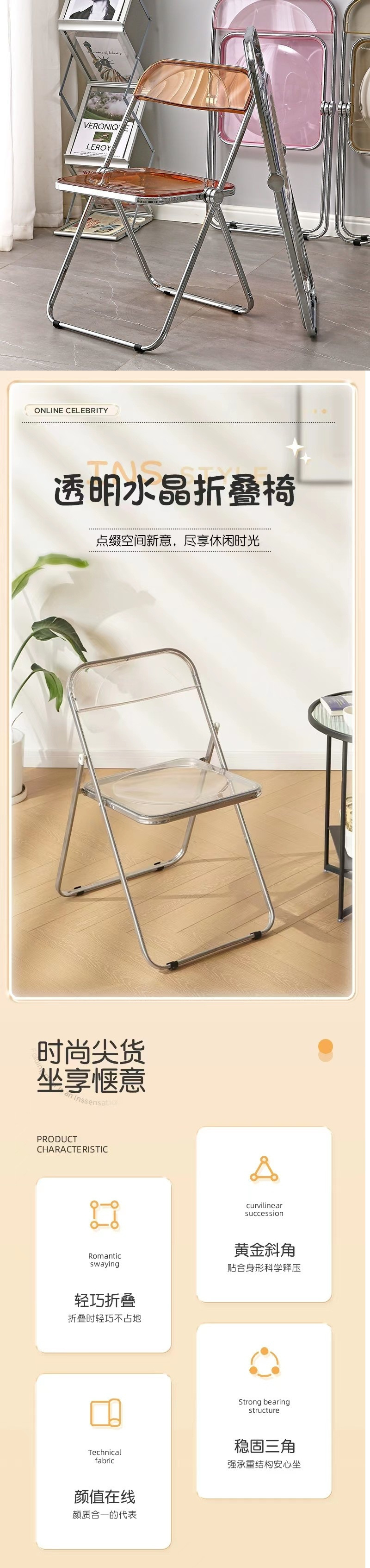 인터넷 유명 인사 투명 의자 사진 접이식 의자 내부 간단한 메이크업 아크릴 등받이 가정용 의자 다이닝 의자 두껍게