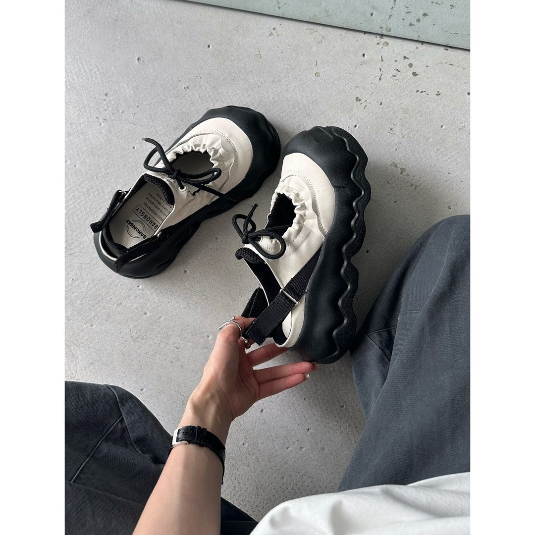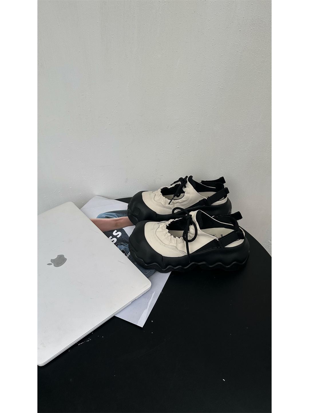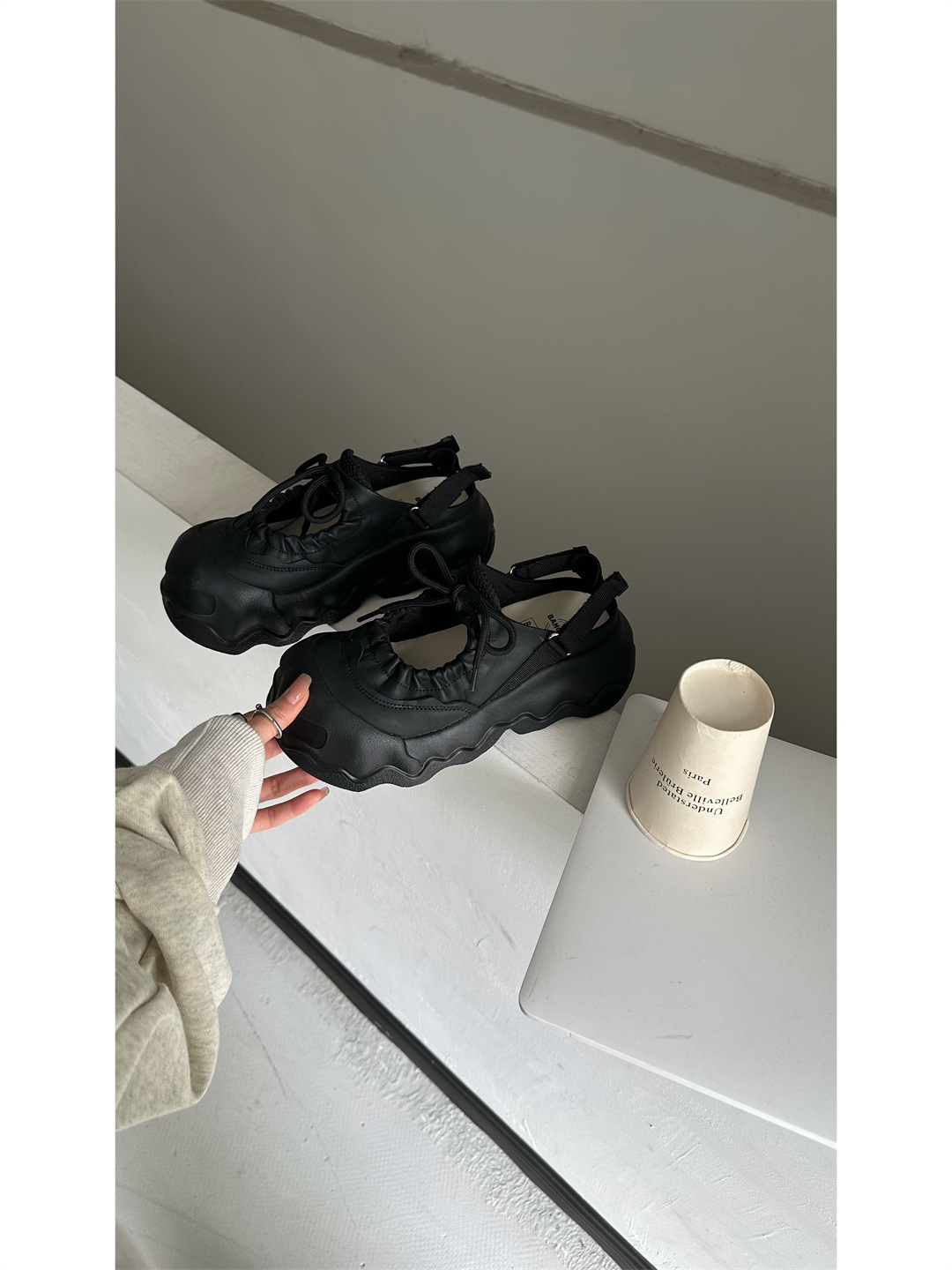 유럽과 미국 스타일의 여름 튀김 거리 추악한 사랑스러운 5CM Mary Jane 신발 여성 웨이브 두꺼운 바닥 레이스 업 속이 빈 큰 머리 빵 신발스토어 가기