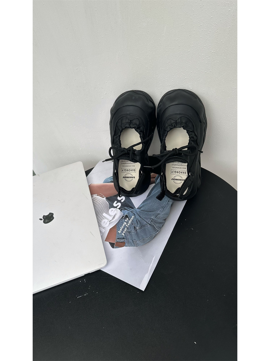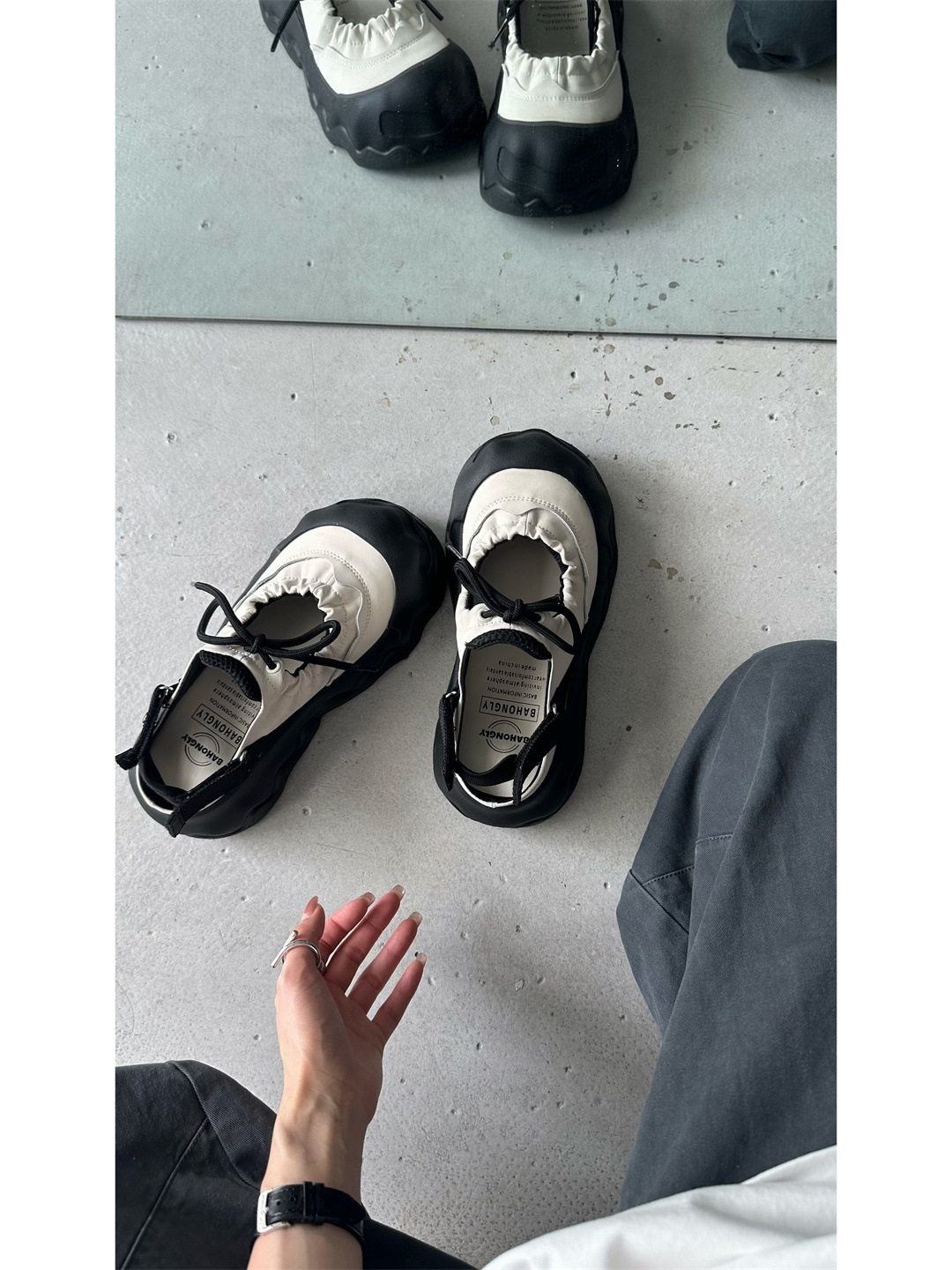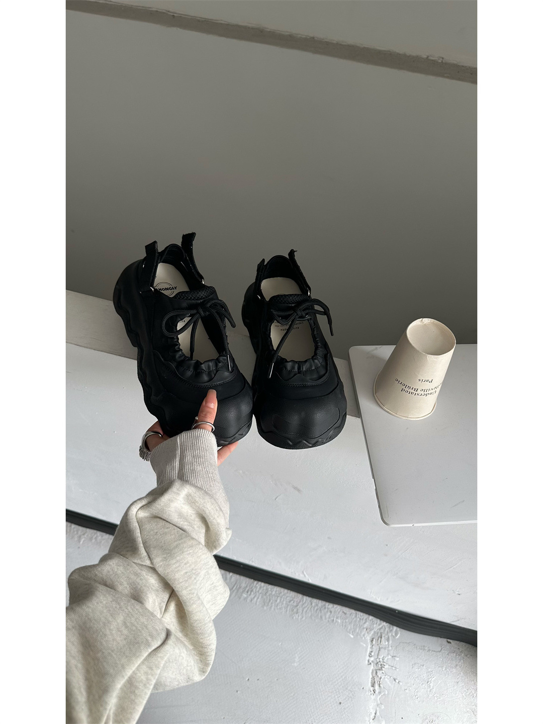 유럽과 미국 스타일의 여름 튀김 거리 추악한 사랑스러운 5CM Mary Jane 신발 여성 웨이브 두꺼운 바닥 레이스 업 속이 빈 큰 머리 빵 신발스토어 가기