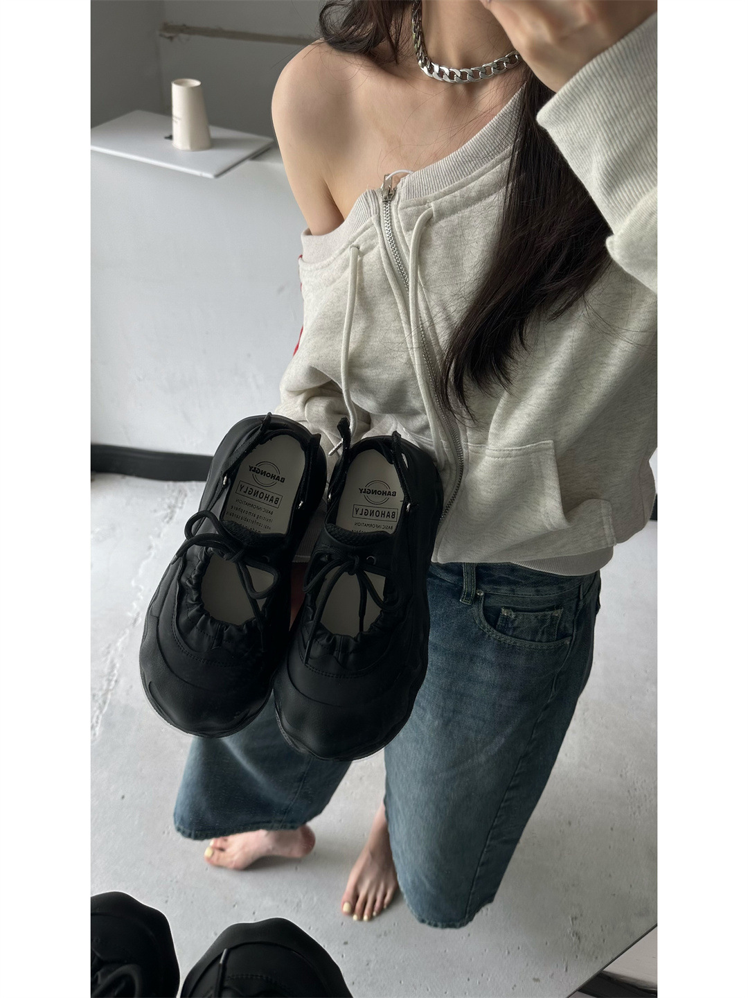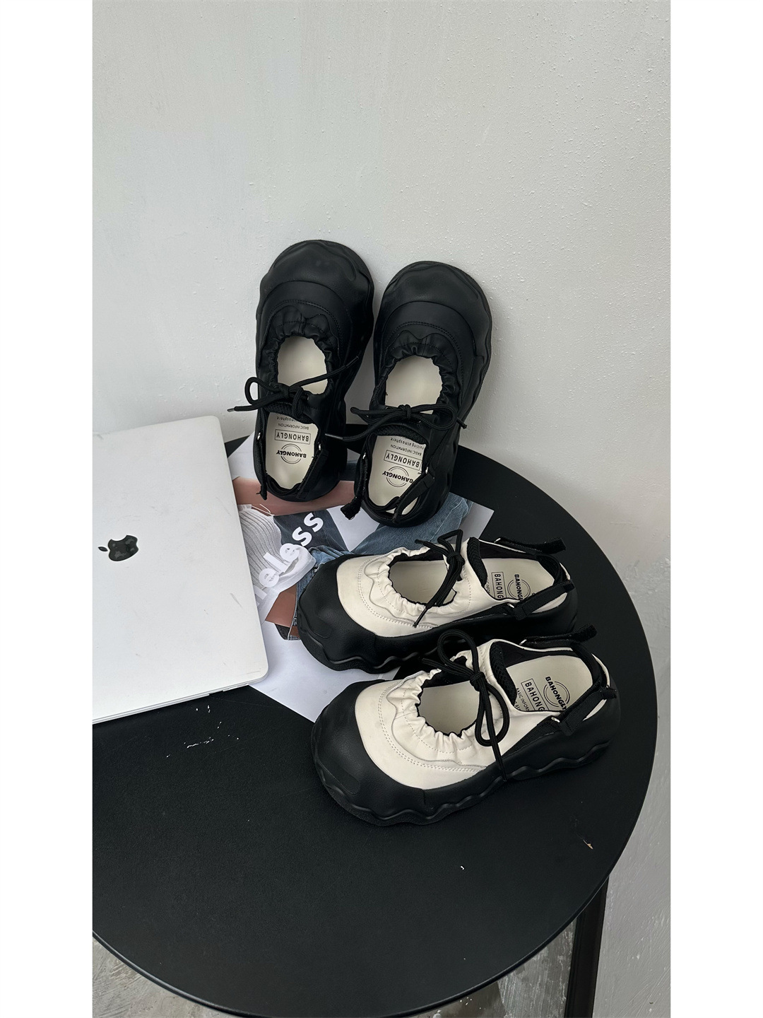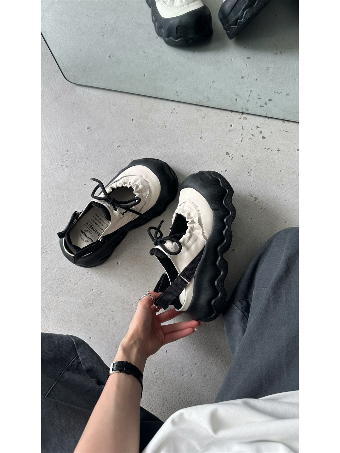 유럽과 미국 스타일의 여름 튀김 거리 추악한 사랑스러운 5CM Mary Jane 신발 여성 웨이브 두꺼운 바닥 레이스 업 속이 빈 큰 머리 빵 신발