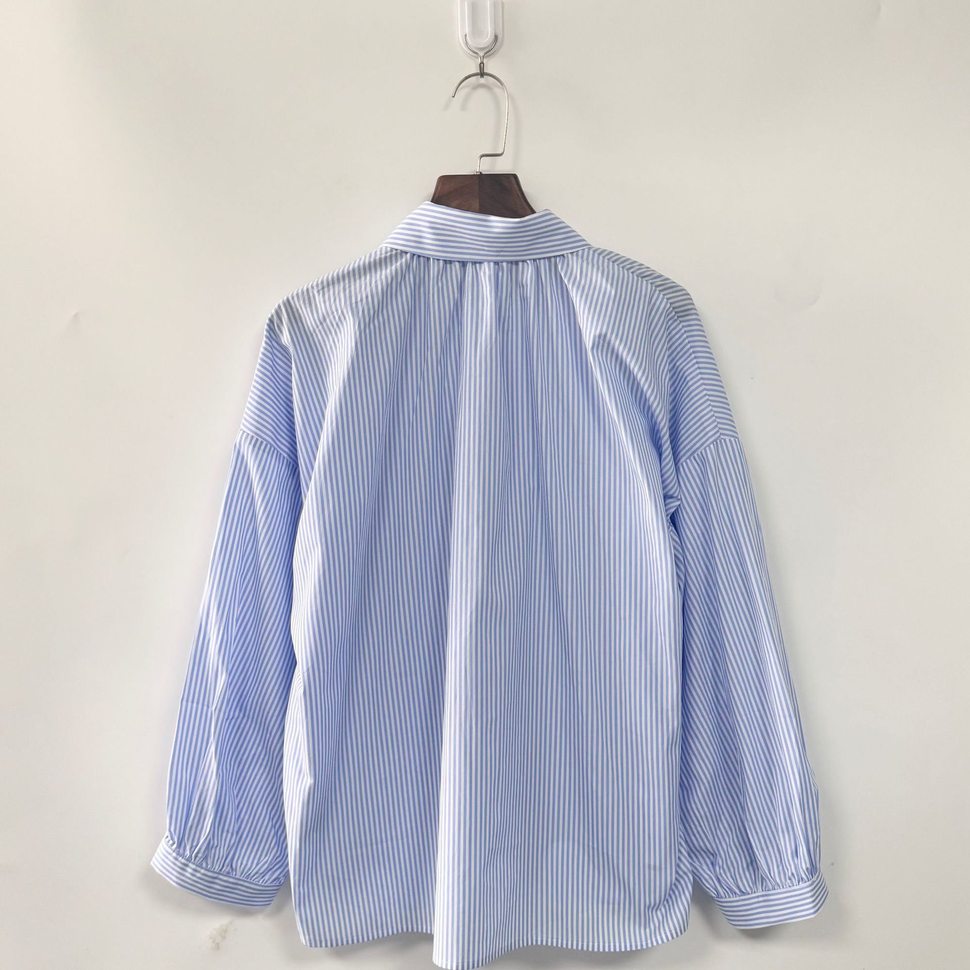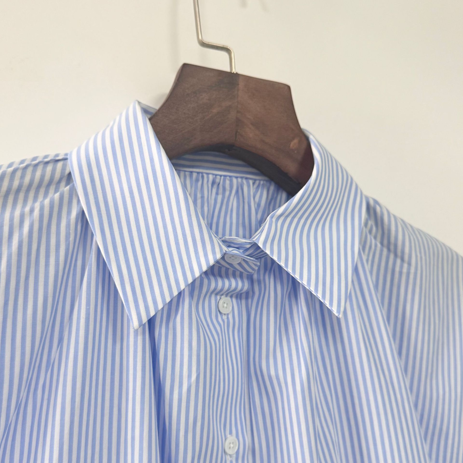 MAX25 봄과 여름 새로운 클래식 올 매치 슬림 코튼 포플린 스트라이프 셔츠 탑