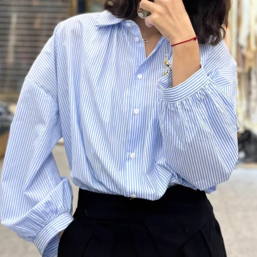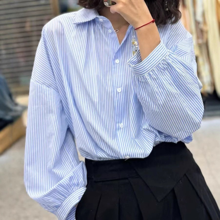 MAX25 봄과 여름 새로운 클래식 올 매치 슬림 코튼 포플린 스트라이프 셔츠 탑스토어 가기