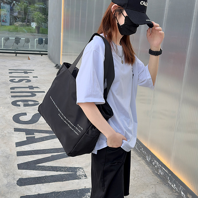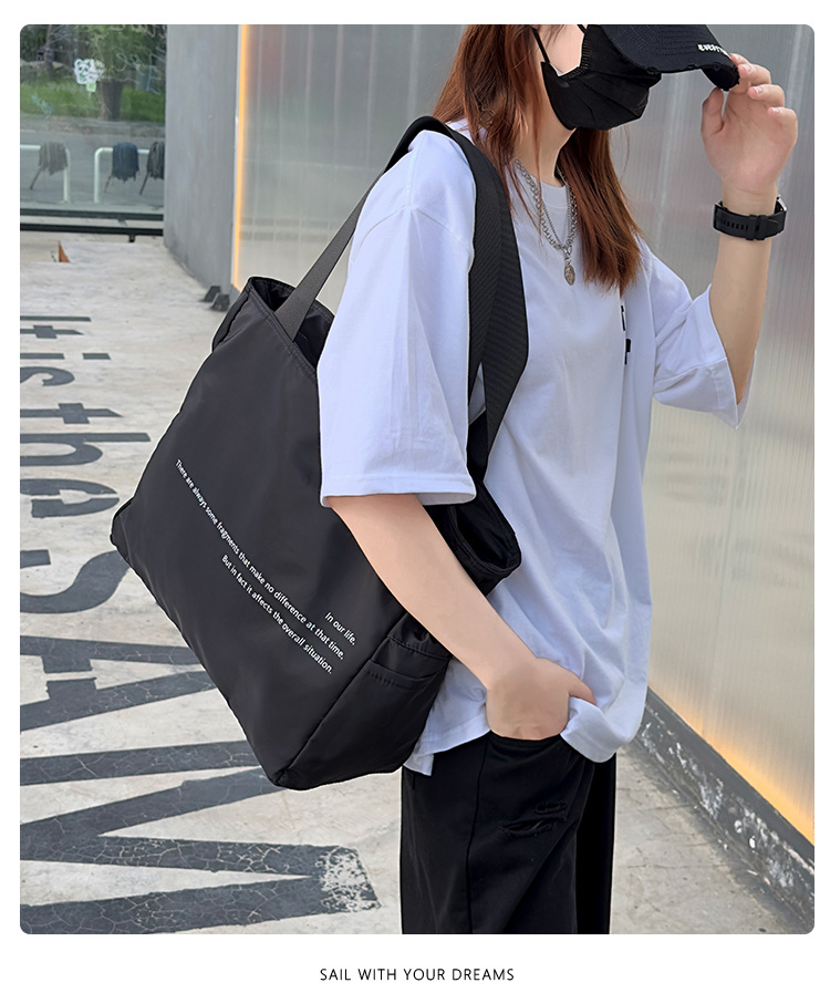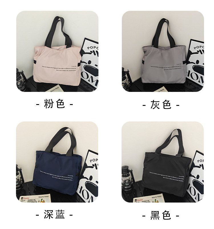 숄더백 일본 나일론 솔리드 컬러 패션 레터 토트 백 캐주얼 대용량 클래스 통근 다용도 캔버스 백