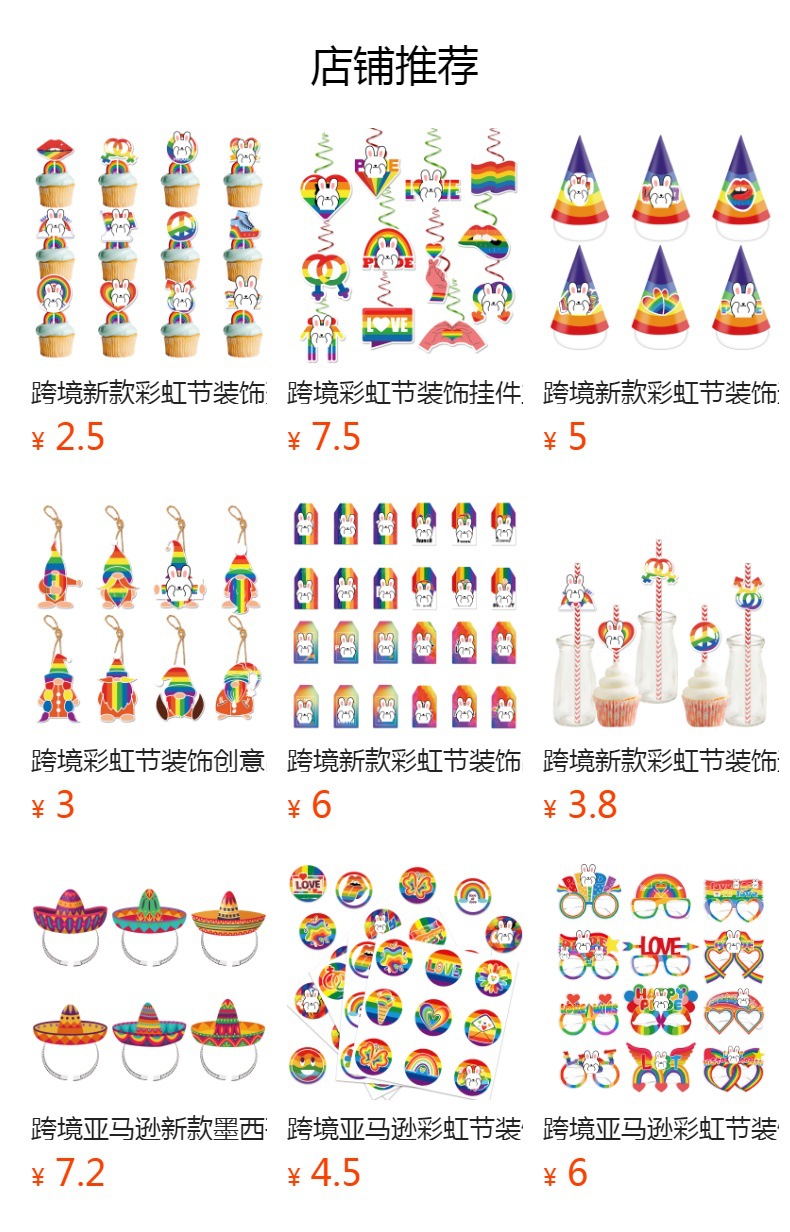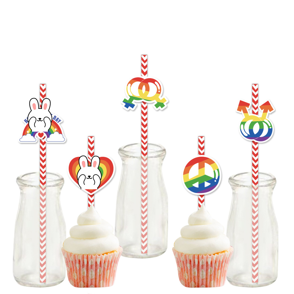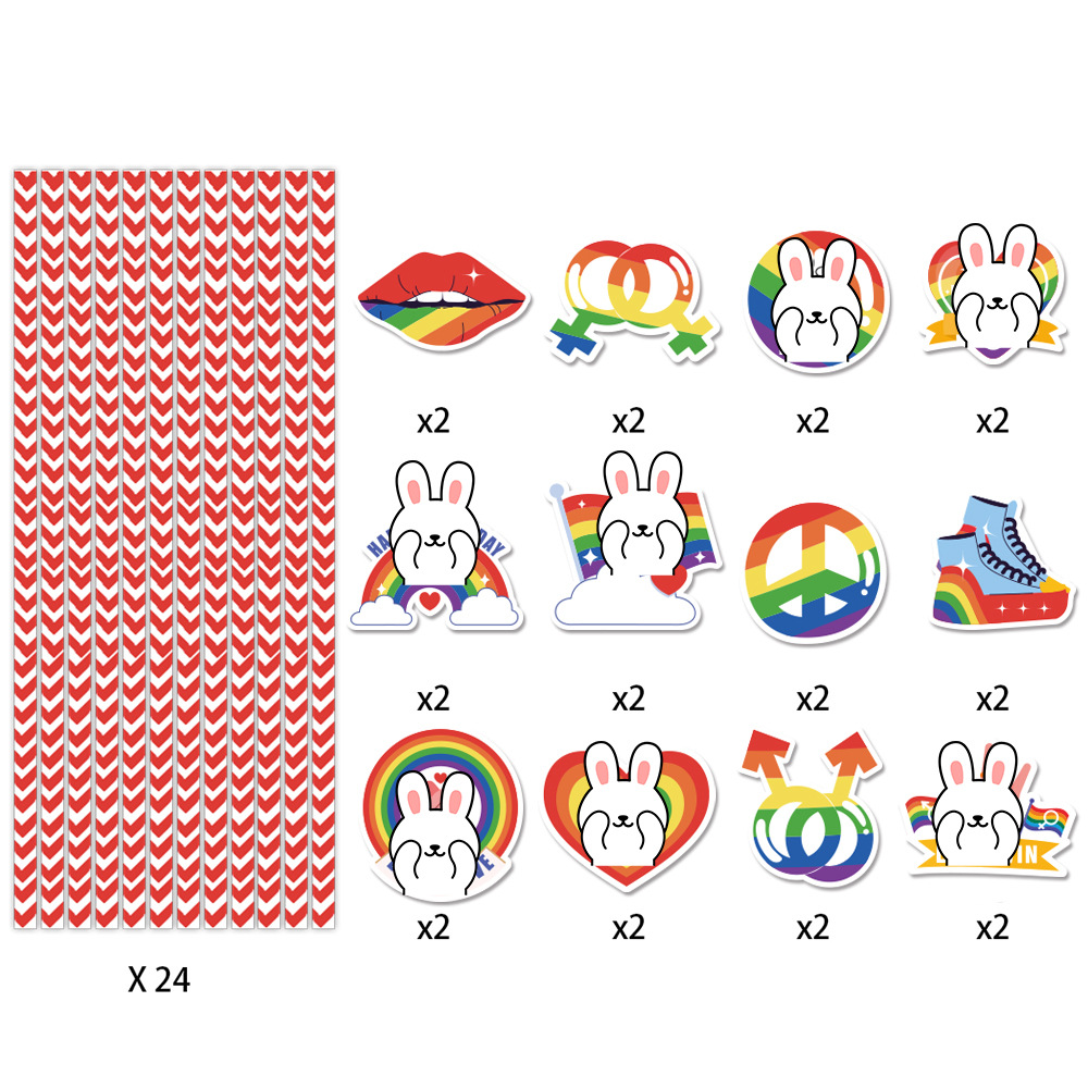 系列:跨境彩虹节装饰一次性吸管派对用品