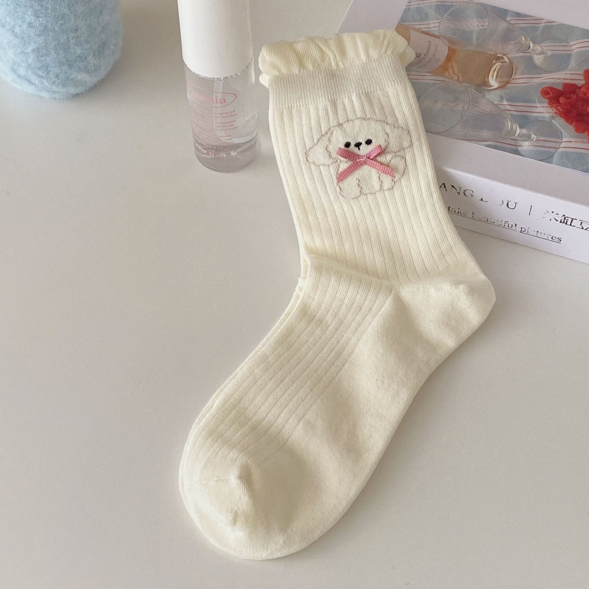 양말 여성의 봄과 여름 얇은 튜브 양말 bowknot 강아지 여성 양말, 트렌디 한 귀여운 만화 양말 발레 스타일