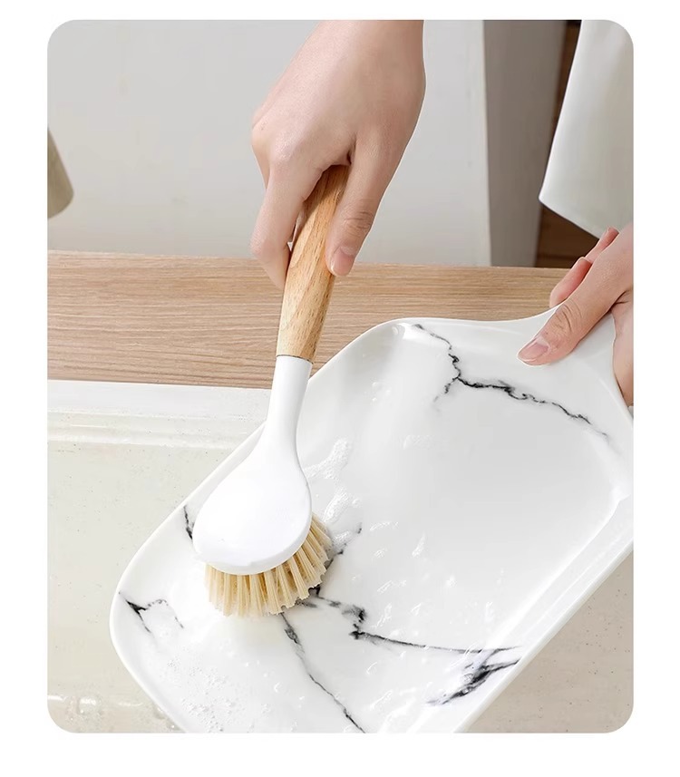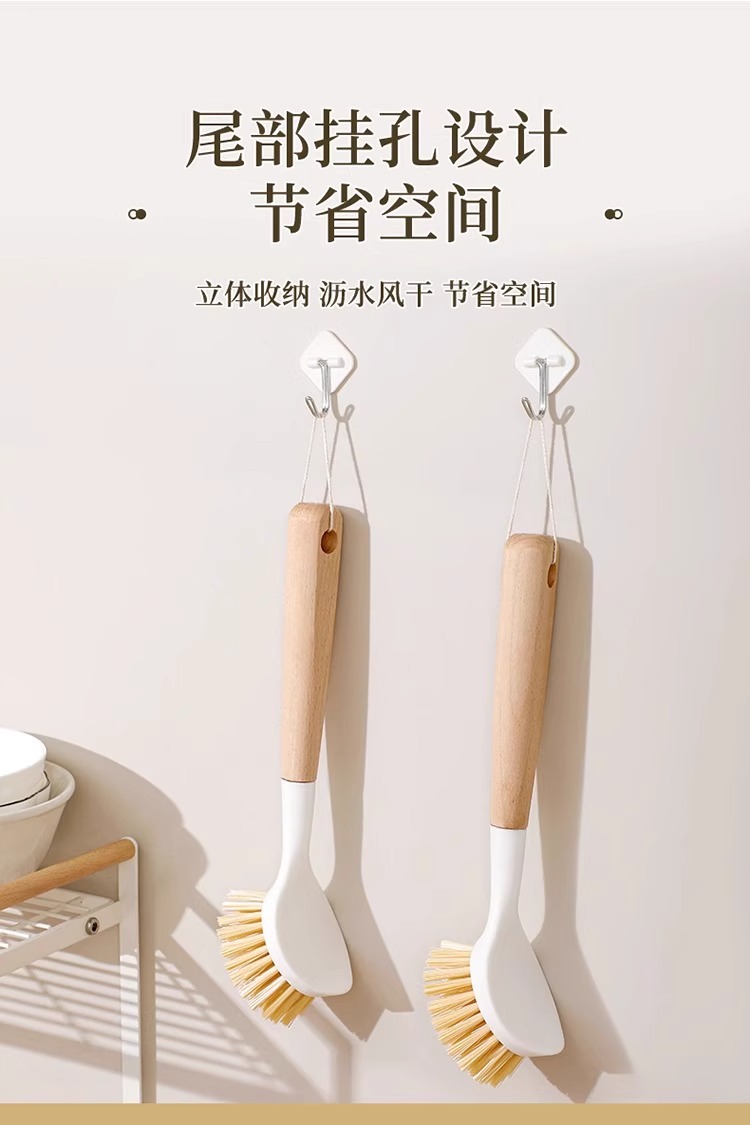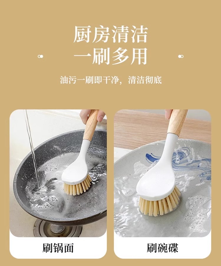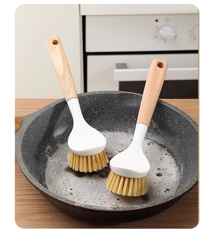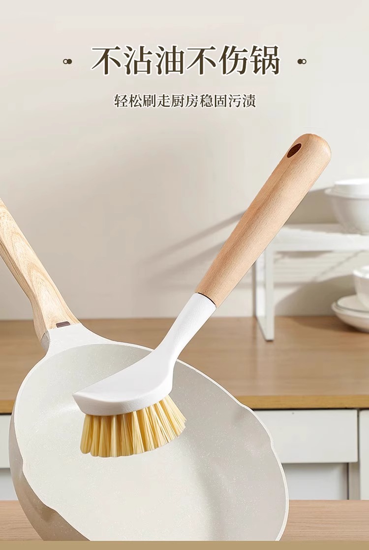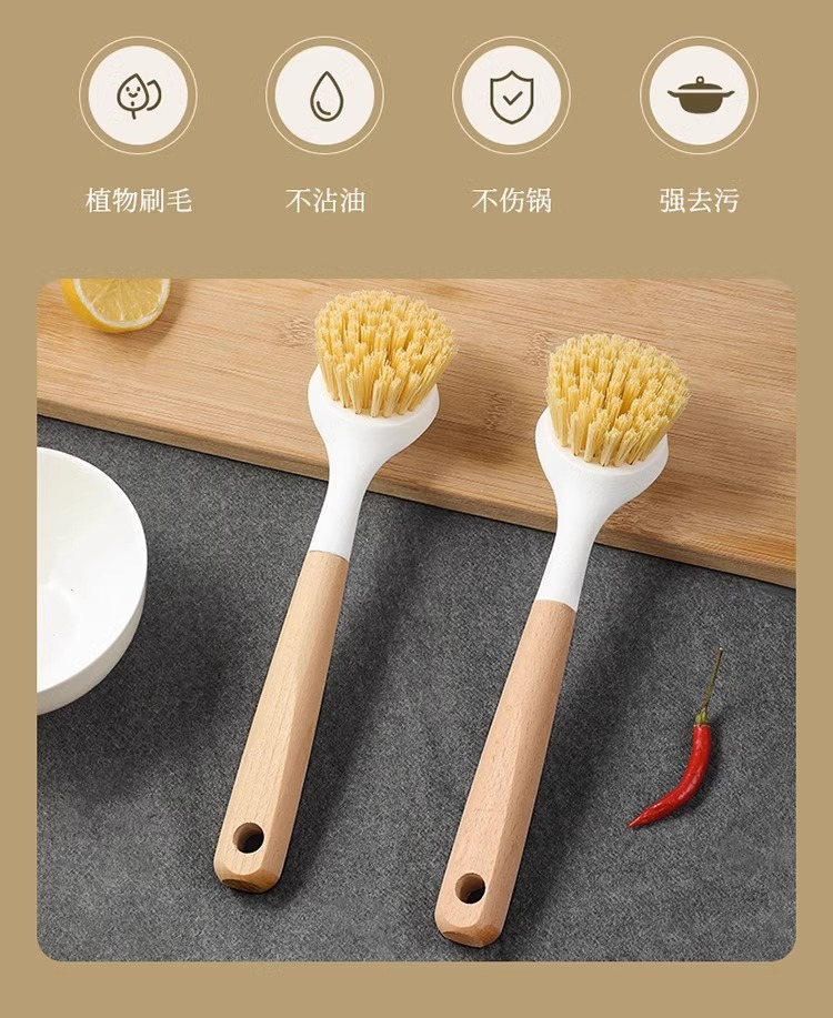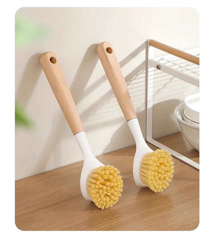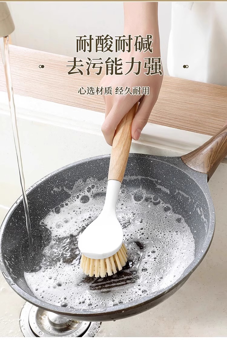 ✅플라스틱 냄비 브러시 가정용 긴 손잡이 스크러빙 팬 나무 손잡이 브러시 주방 청소 브러시 청소