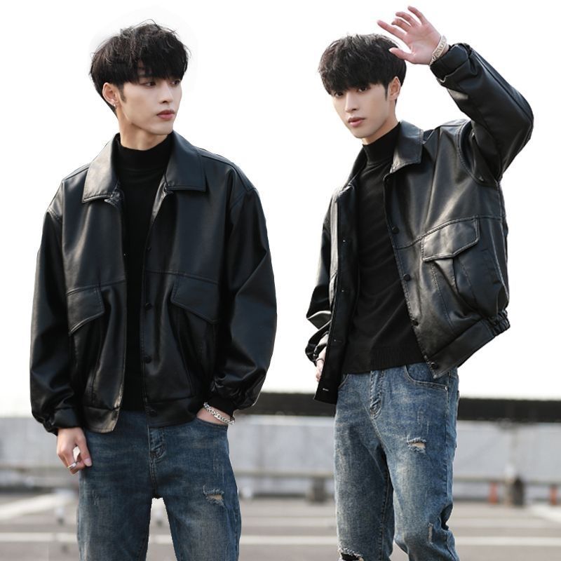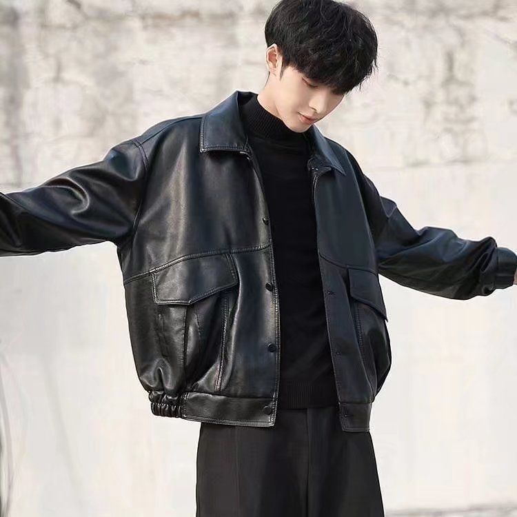 가죽 남성 복고풍 느슨한 한국 스타일 옷깃 바이커 의류 트렌디 한 브랜드 Aviator 가죽 자켓 코트 트렌디