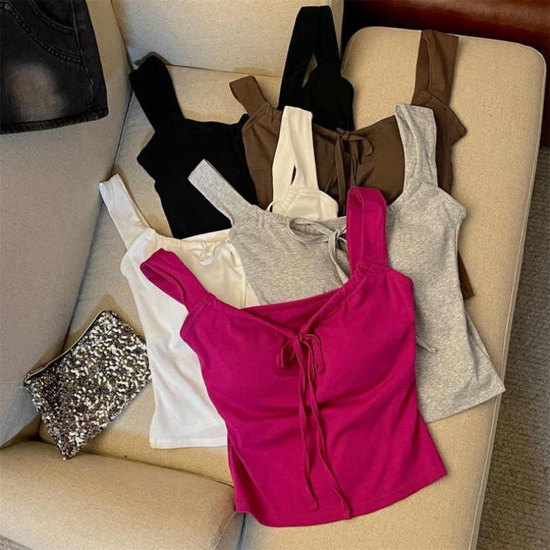 흰색 카미 솔 가슴 패드 여성용 여름 내외형 디자인 틈새 짧은 슬림 핏 민소매 탑스토어 가기