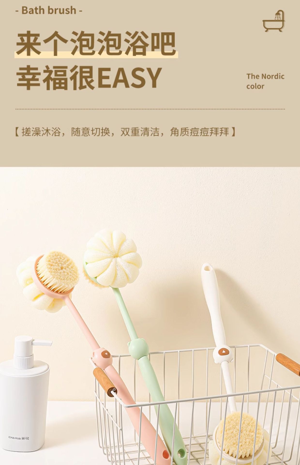 ✅목욕 브러시 다시 문지르면 긴 손잡이 부드러운 헤어 브러시 목욕 브러시 양면 목욕 진흙 문지르는 재 목욕 브러시 신을 요구하지 않습니다.