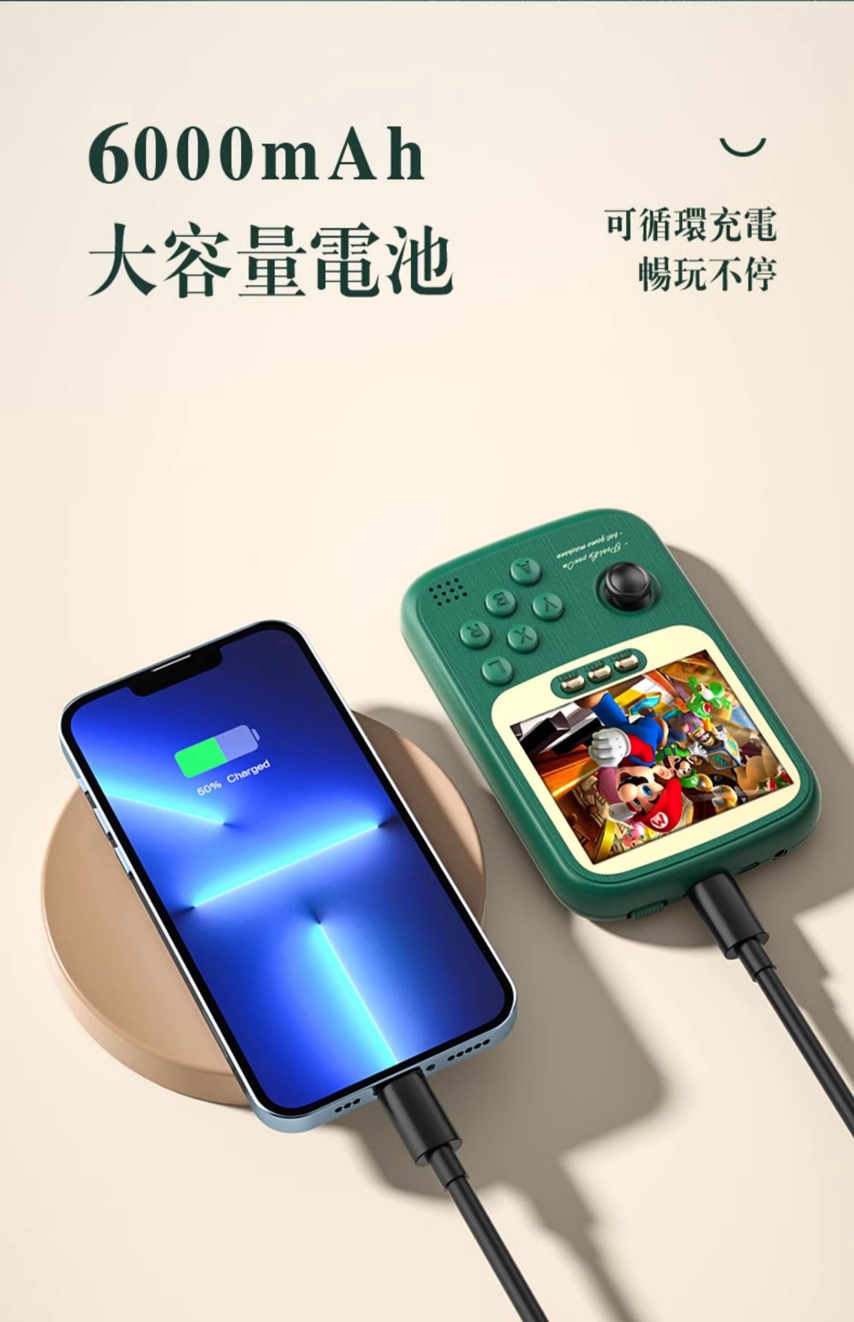 • [게임기 파워뱅크] 발레핑크 - 10kmAh-500게임➕더블 핸들