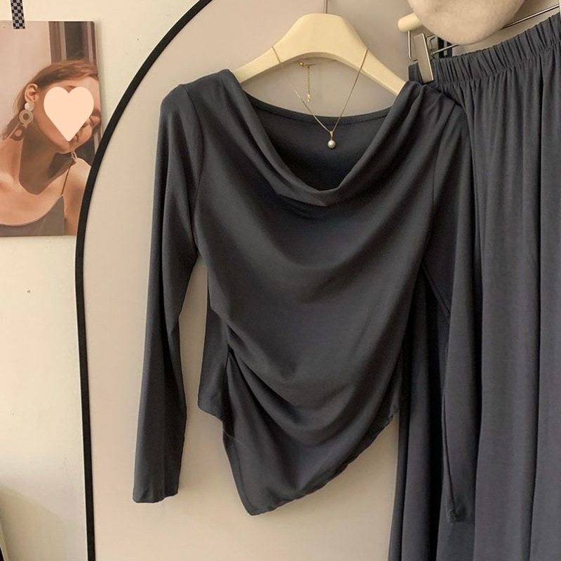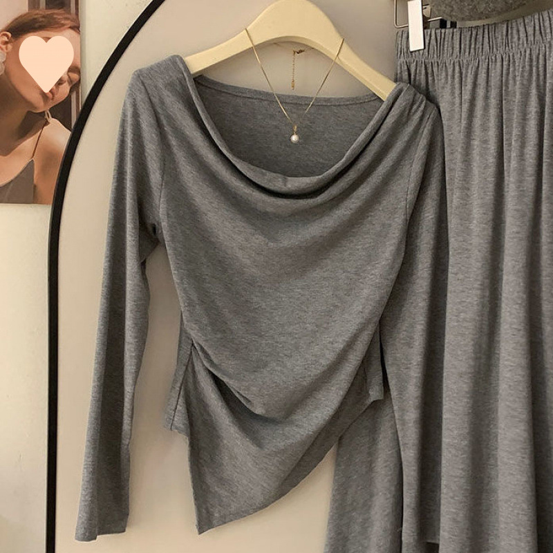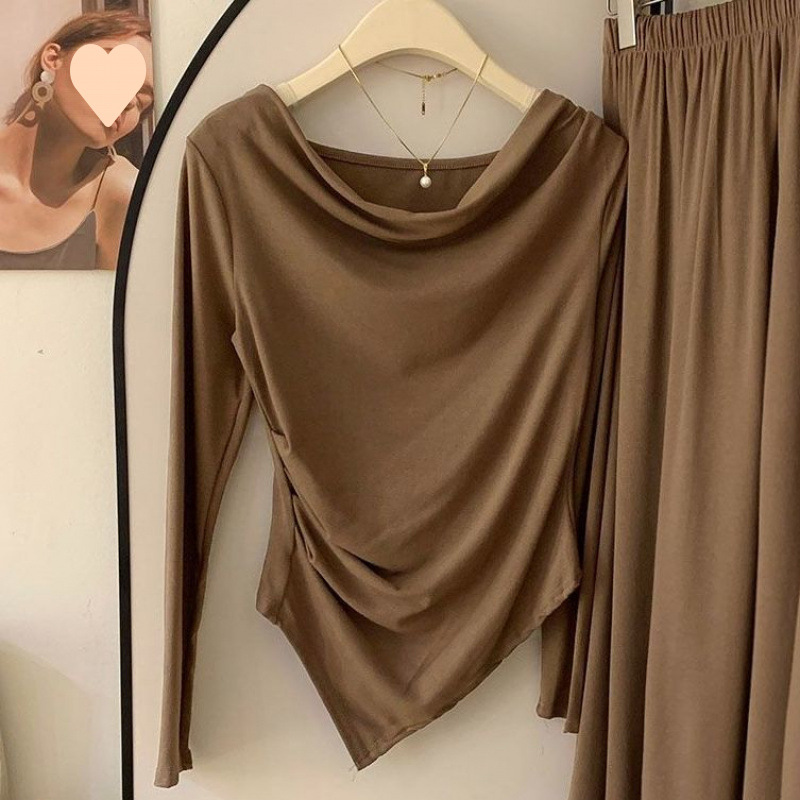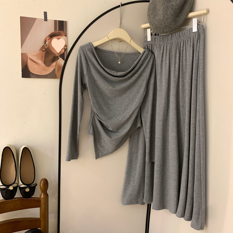 이른 가을 불규칙한 허리 어깨 셔츠 드레이프 긴 원피스 패션 캐주얼 투피스 세트스토어 가기