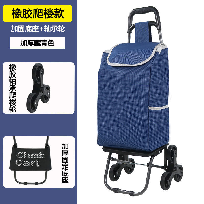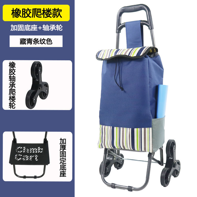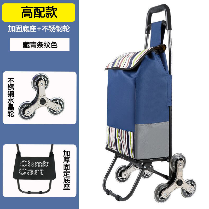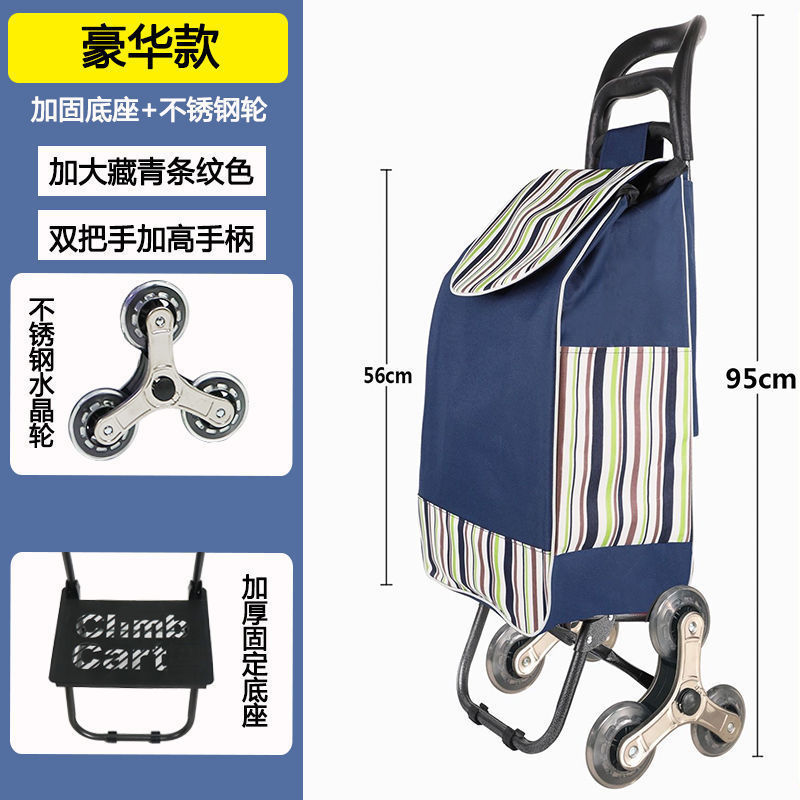 • 곡선형 손잡이 소머리 가방(남색 줄무늬) 스테인리스 계단 오르기 바퀴