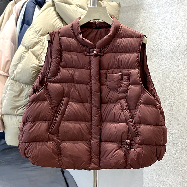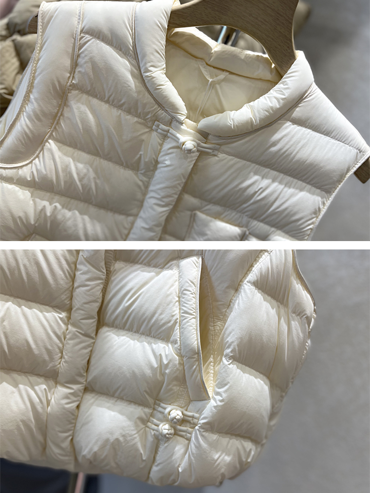 국경 간 가을과 겨울 새로운 화이트 덕 다운 칼라 다운 재킷 조끼 여자 레트로 버클 조끼 올 매치 재킷 트렌디