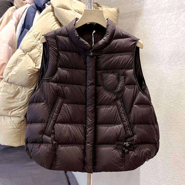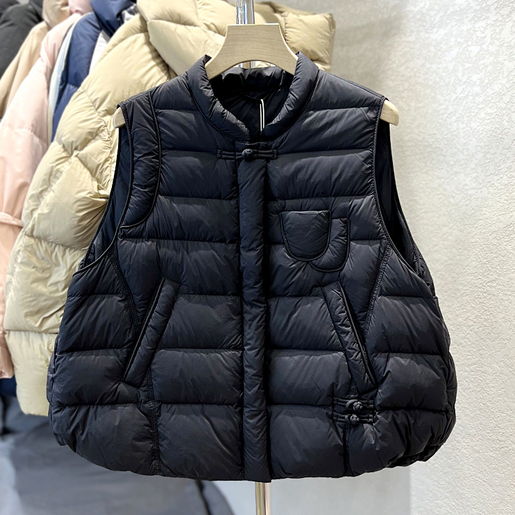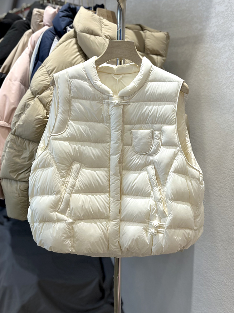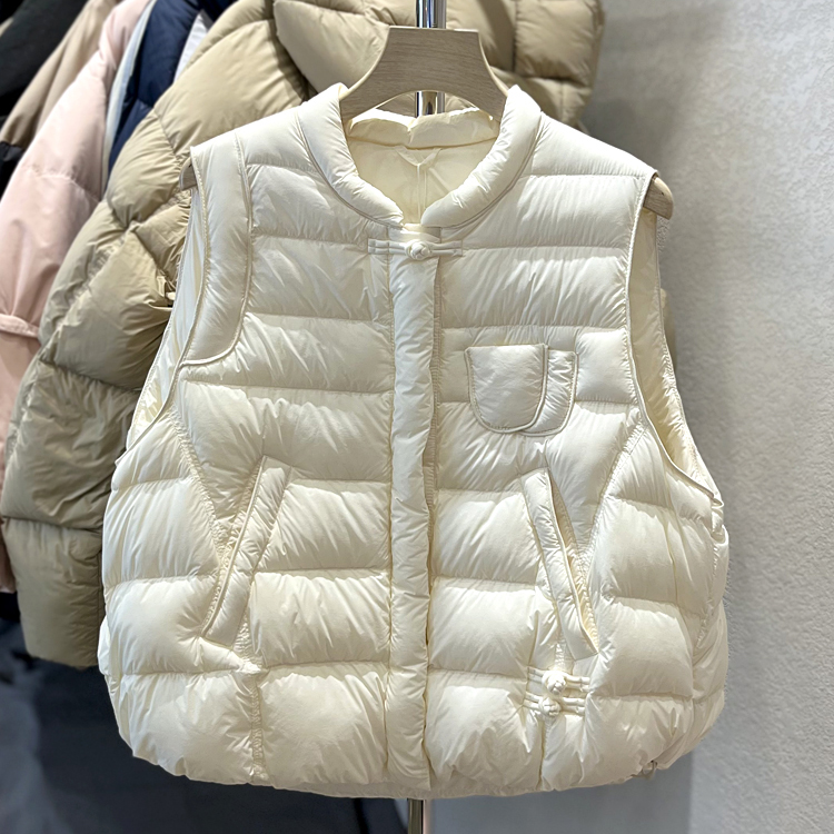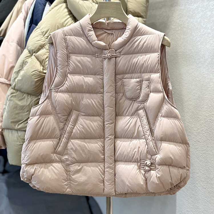 국경 간 가을과 겨울 새로운 화이트 덕 다운 칼라 다운 재킷 조끼 여자 레트로 버클 조끼 올 매치 재킷 트렌디스토어 가기