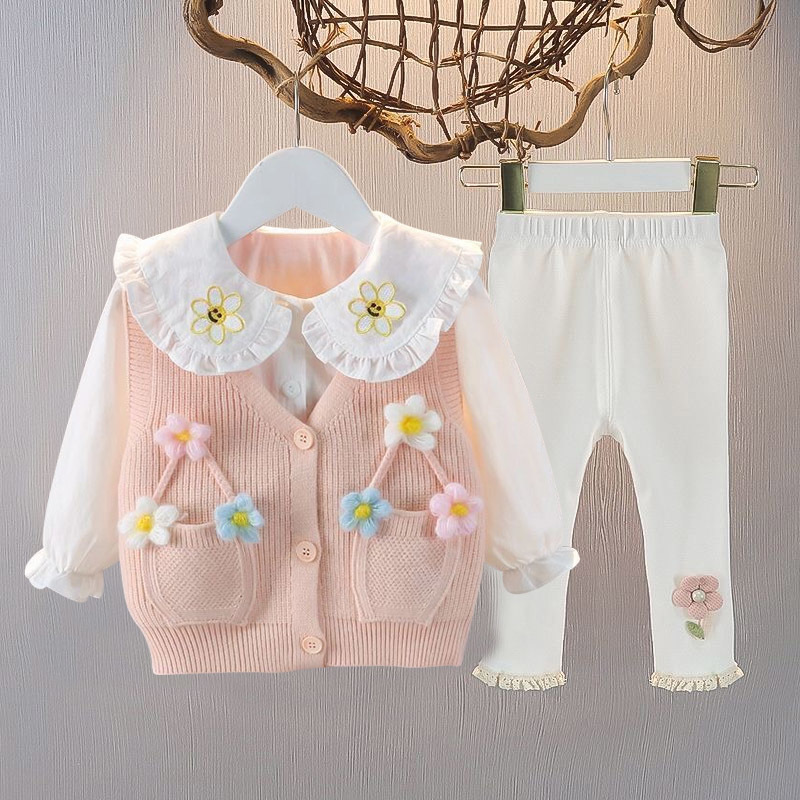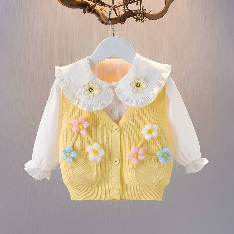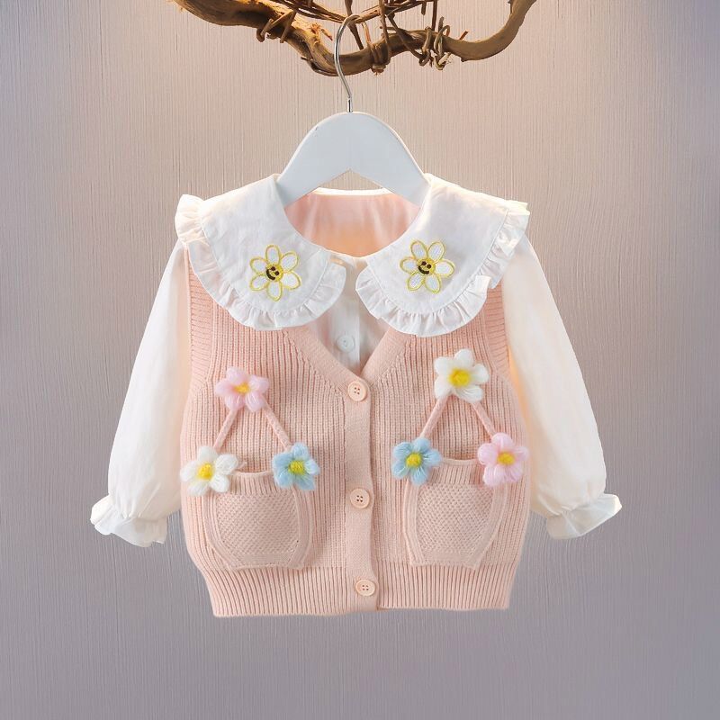 새 소녀의 공주 조끼 공주 바람 봄과 가을 아기 소녀의 스웨터 세트 아기 투피스 웨스턴 스타일 재킷스토어 가기
