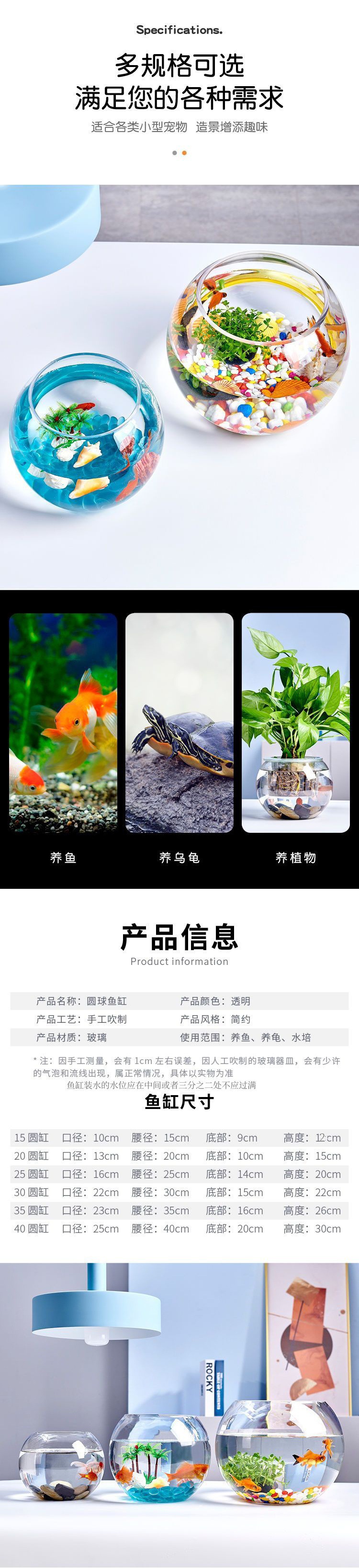 물고기 탱크 유리 탱크 사무실 작은 물고기 탱크 두꺼운 투명 유리 거북이 가정용 데스크탑 라운드 풍경스토어 가기