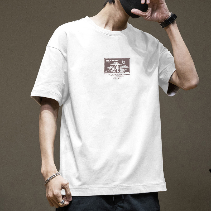 프린트된 순면 여름 레터링 남성 상의, 커플룩 디자인, 반팔 아메리칸 캐주얼 티셔츠, 루즈핏 트렌디 브랜드스토어 가기