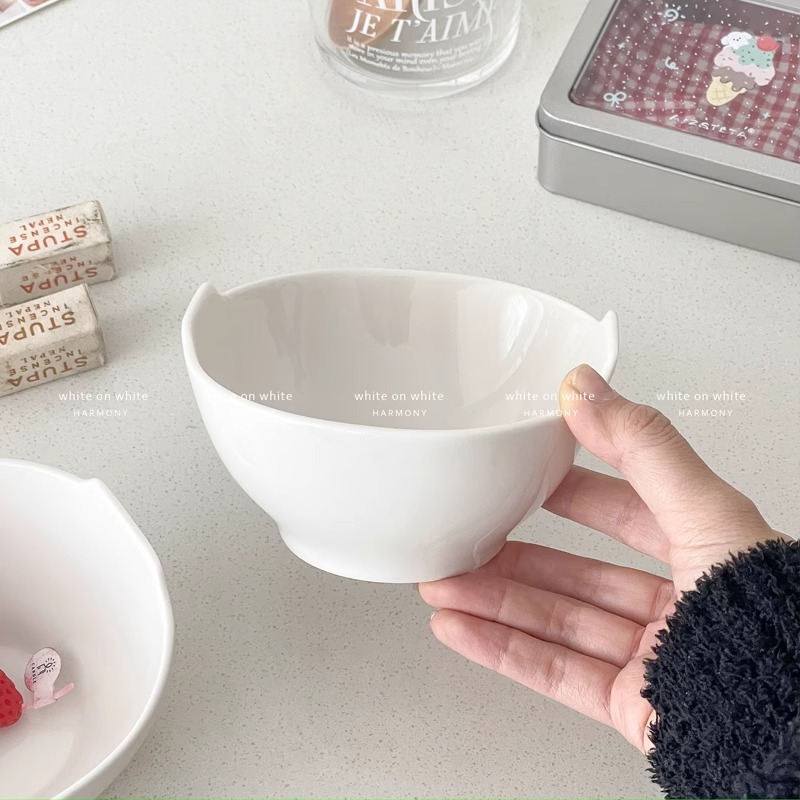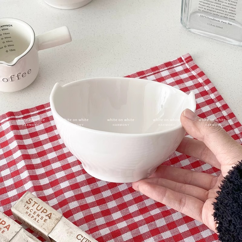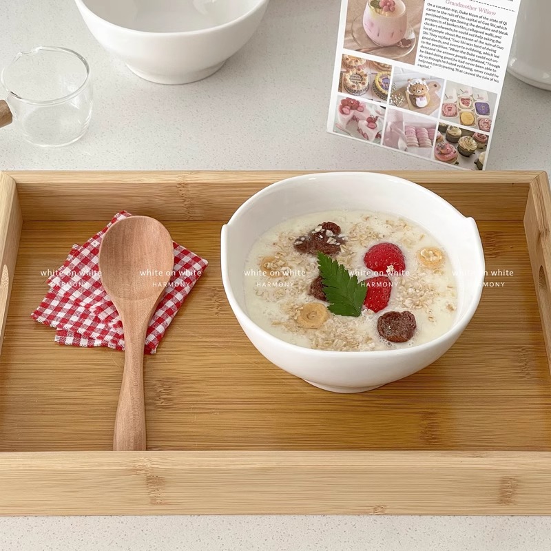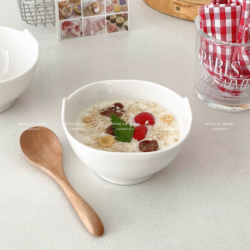 오트밀 요구르트 그릇 가정용 순수 화이트 세라믹 식기 Ins 높은 색상 가치 이나랄 오트밀 아침 식사 그릇 귀여운 오트밀 그릇