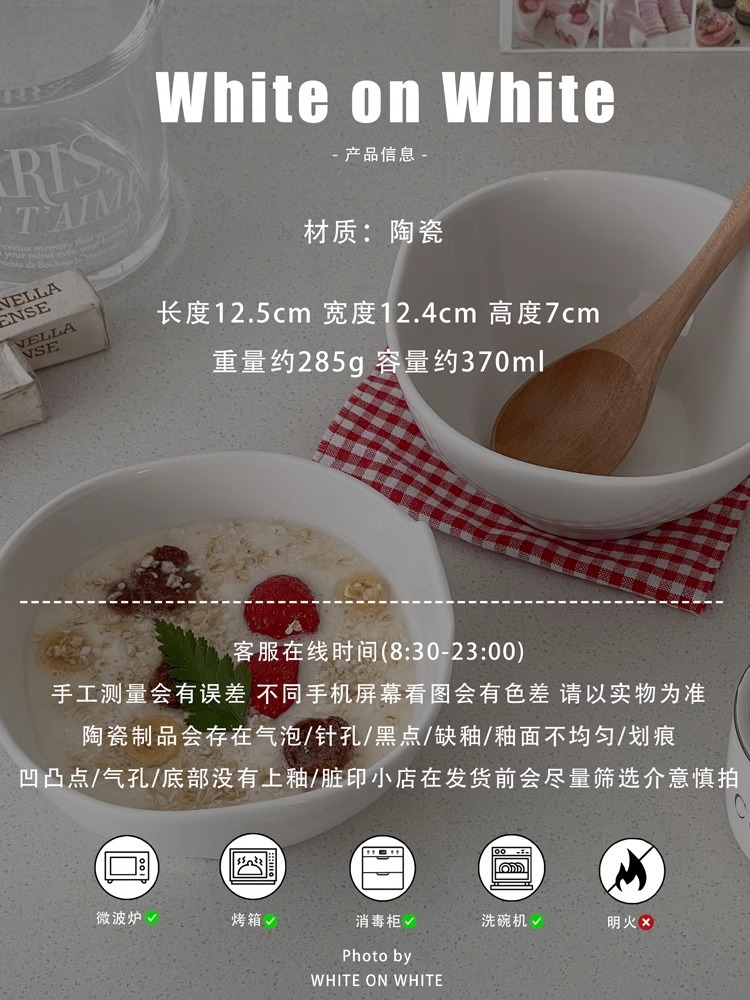 오트밀 요구르트 그릇 가정용 순수 화이트 세라믹 식기 Ins 높은 색상 가치 이나랄 오트밀 아침 식사 그릇 귀여운 오트밀 그릇스토어 가기