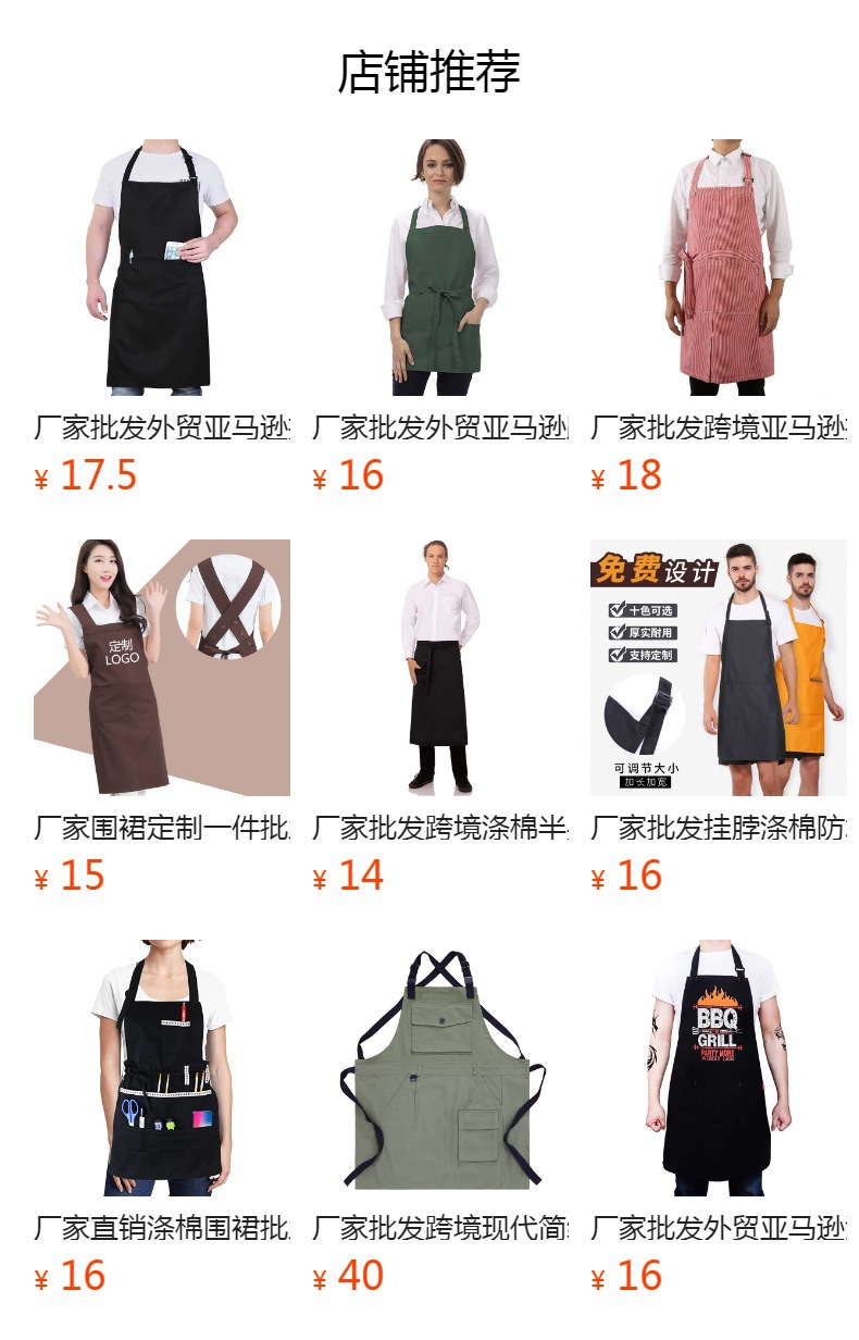 아마존 대외 무역 제조 업체 도매 앞치마 맞춤형 케이터링 커피 숍 작업복 앞치마 인쇄 및 자수 로고