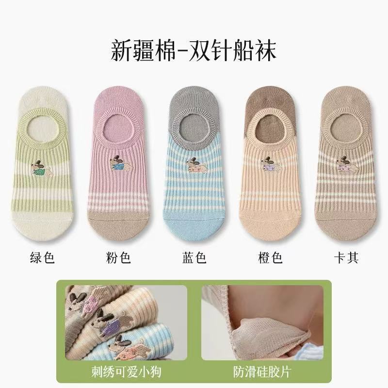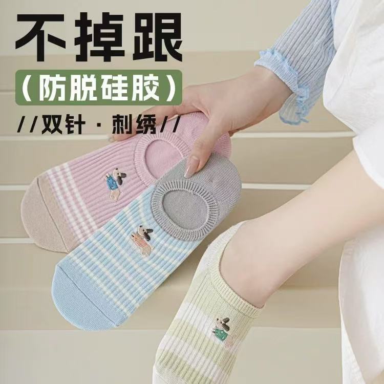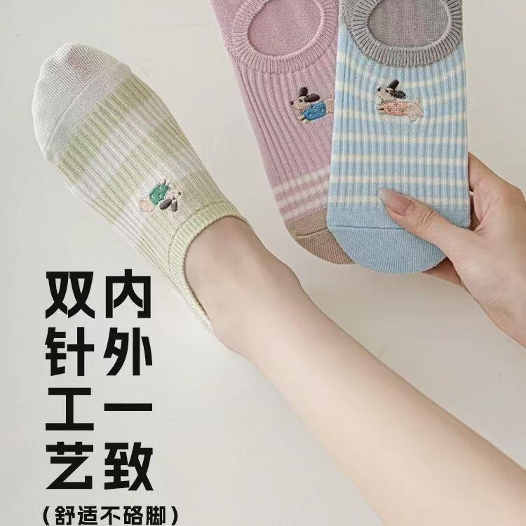 보트 양말 여성의 봄과 여름 얕은 입 로우 사이드 보이지 않는 양말 자수 강아지 양말 더블 바늘 미끄럼 방지 분배 바닥 양말 도매